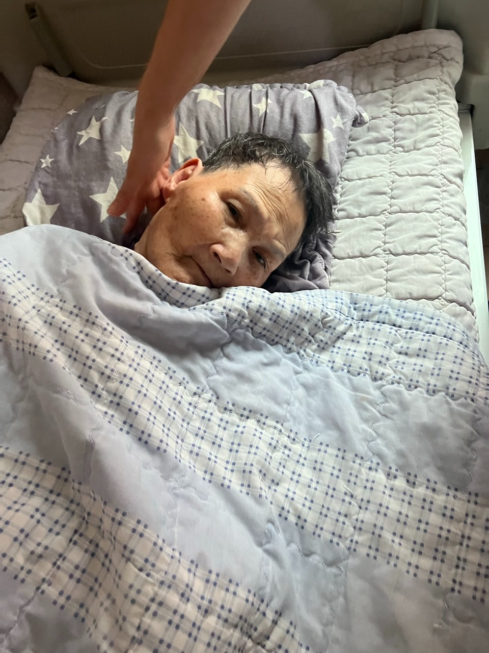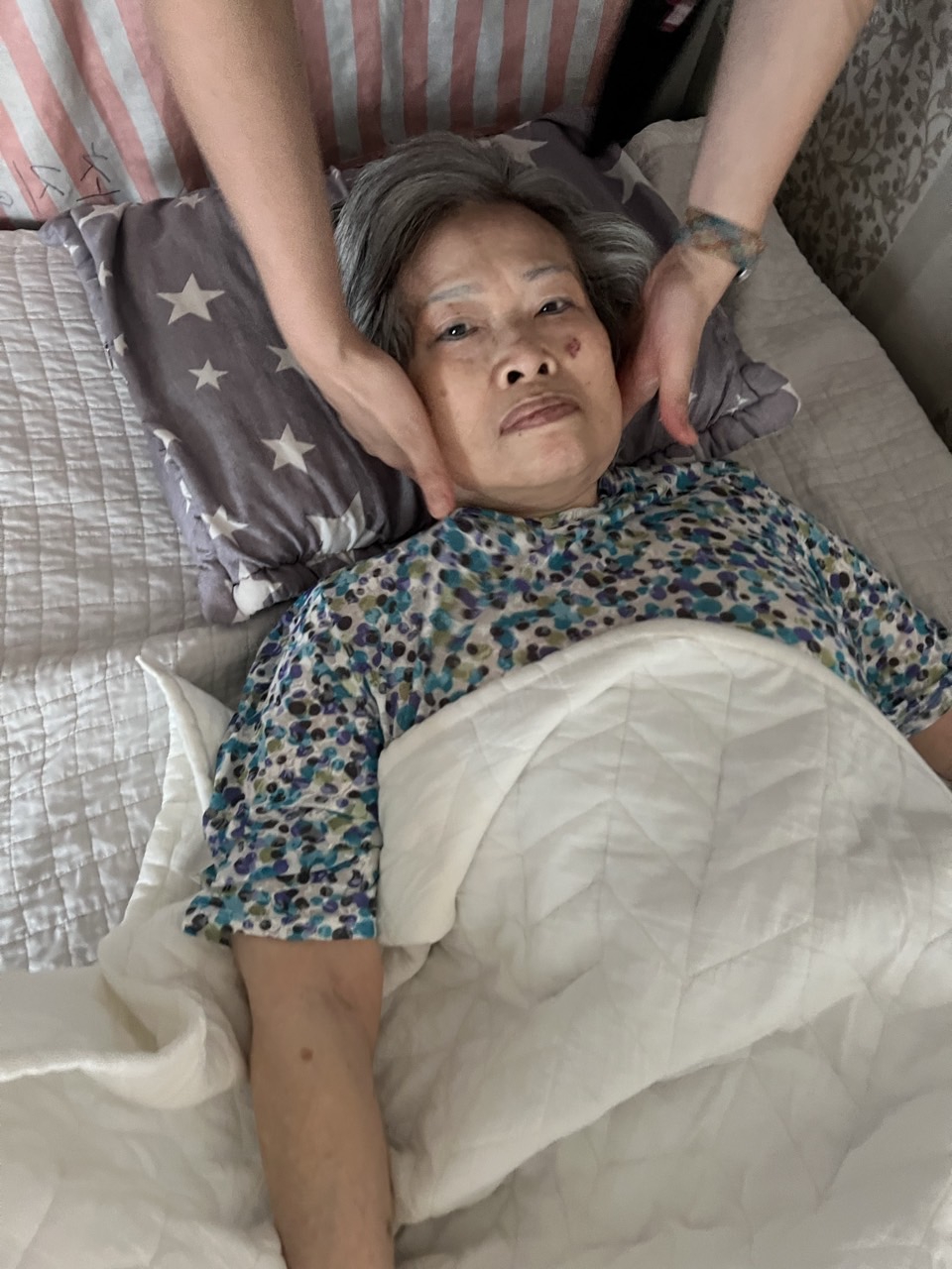 ② 진행 : 앉은자세에서 코에 오일냄새를 맡게 하고, 목 뒤쪽 후두하부를 롤링기법으로 마사지를 해준다