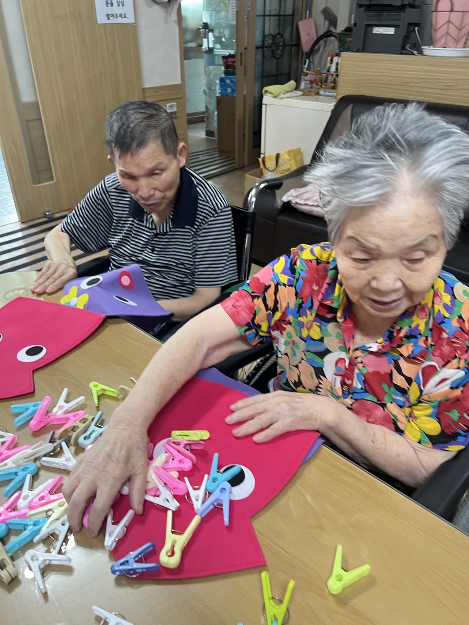 펠트 문어·오징어에게 빨래집게 다리 붙이기 인지활동을 할 수 있다.