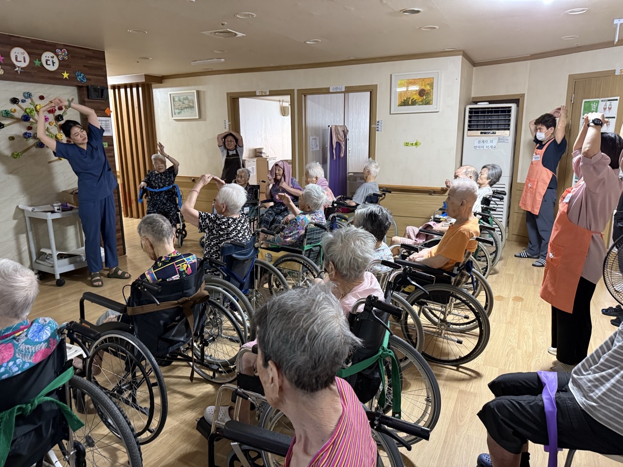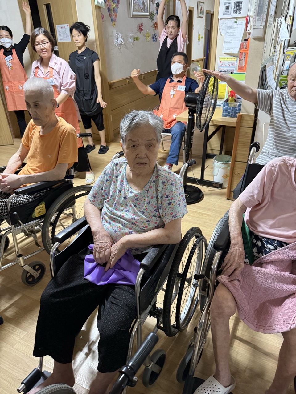 ③ 앞에 선생님이 하시는 것을 보고 따라 하실 수 있도록 유도 한다.