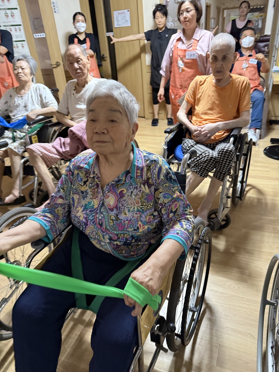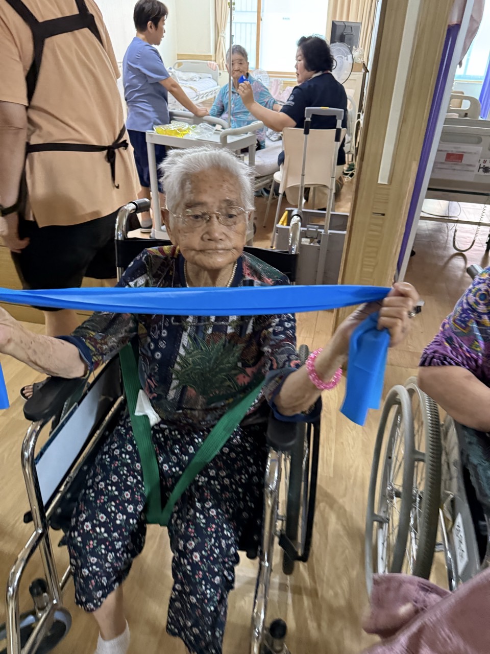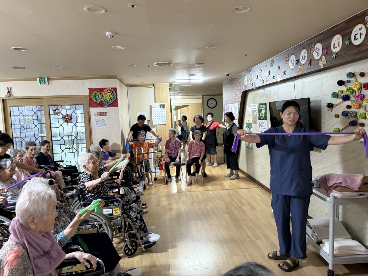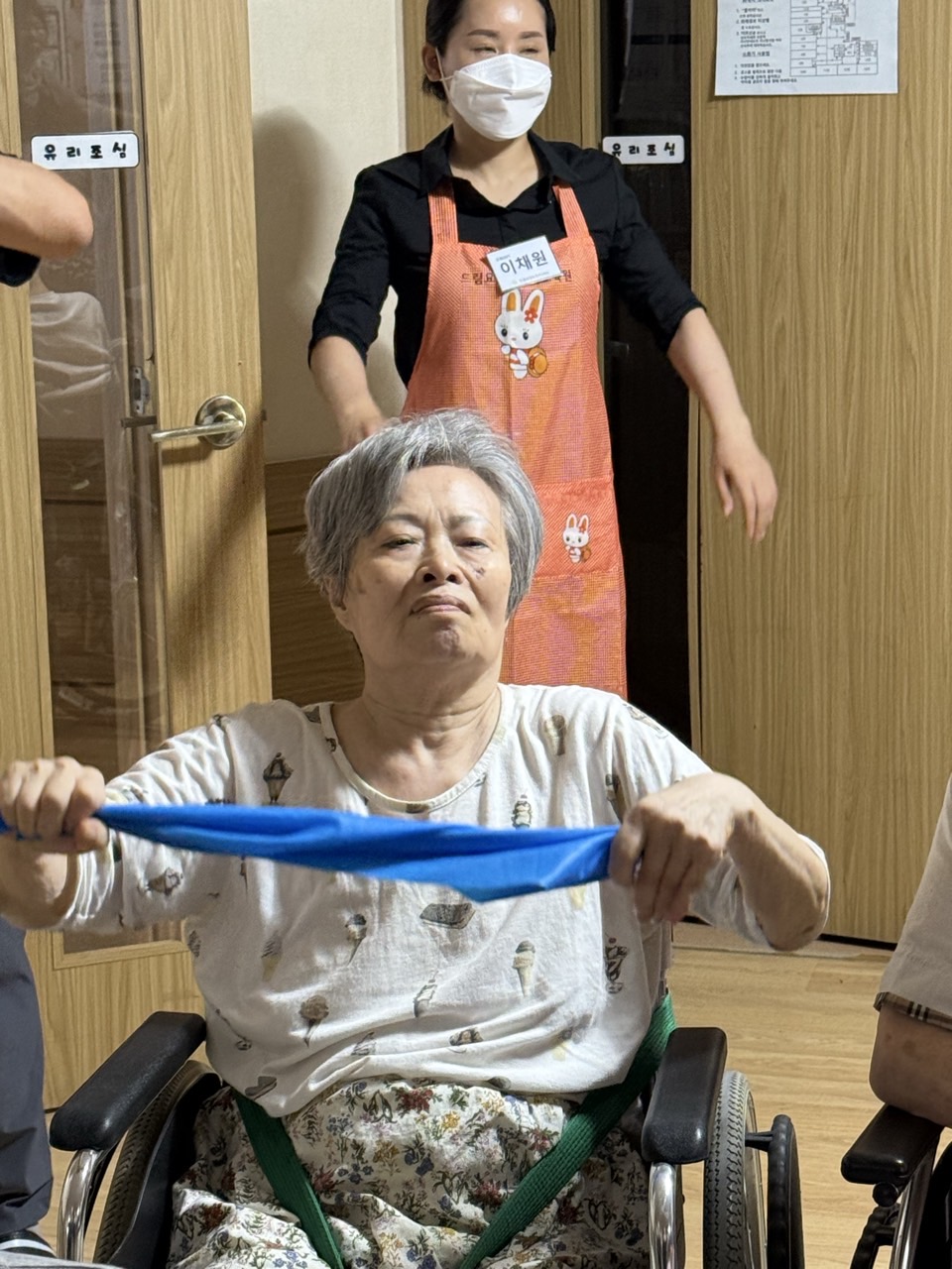 ② 어르신들에게 탄성밴드를 배분해 드린다.