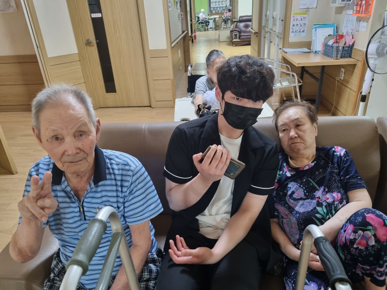 어르신들께서 음악을 들으시고 매우 좋아하셨고 박자에 맞춰 흥을거리시고 따라부르시려고 하셨습니다 ㅎㅎ
