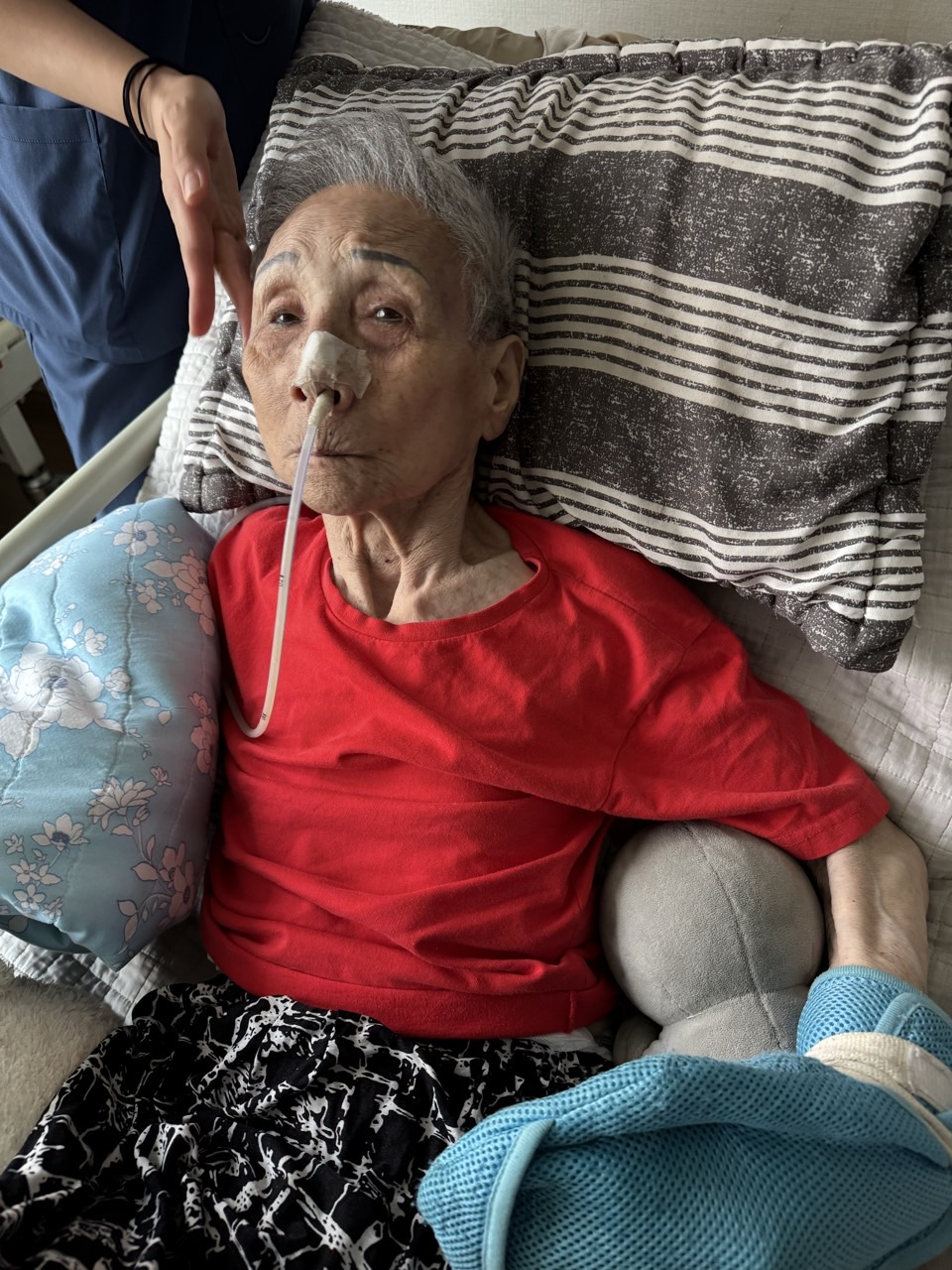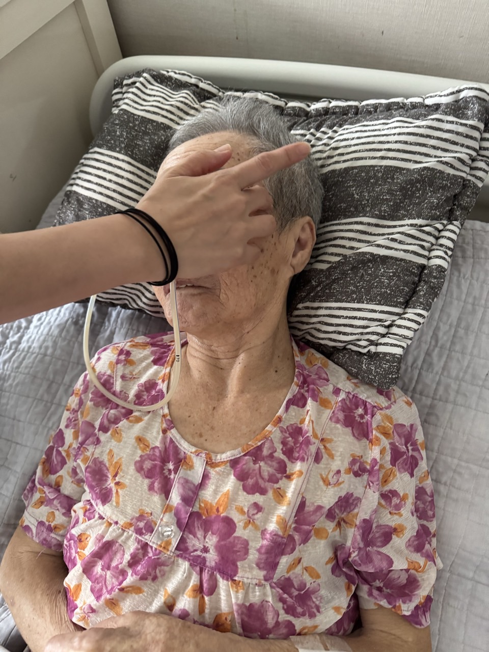 ② 진행 : 코에 오일 냄새를 맡게 하고, 관자놀이에 롤링기법으로 마사지를 해준다.