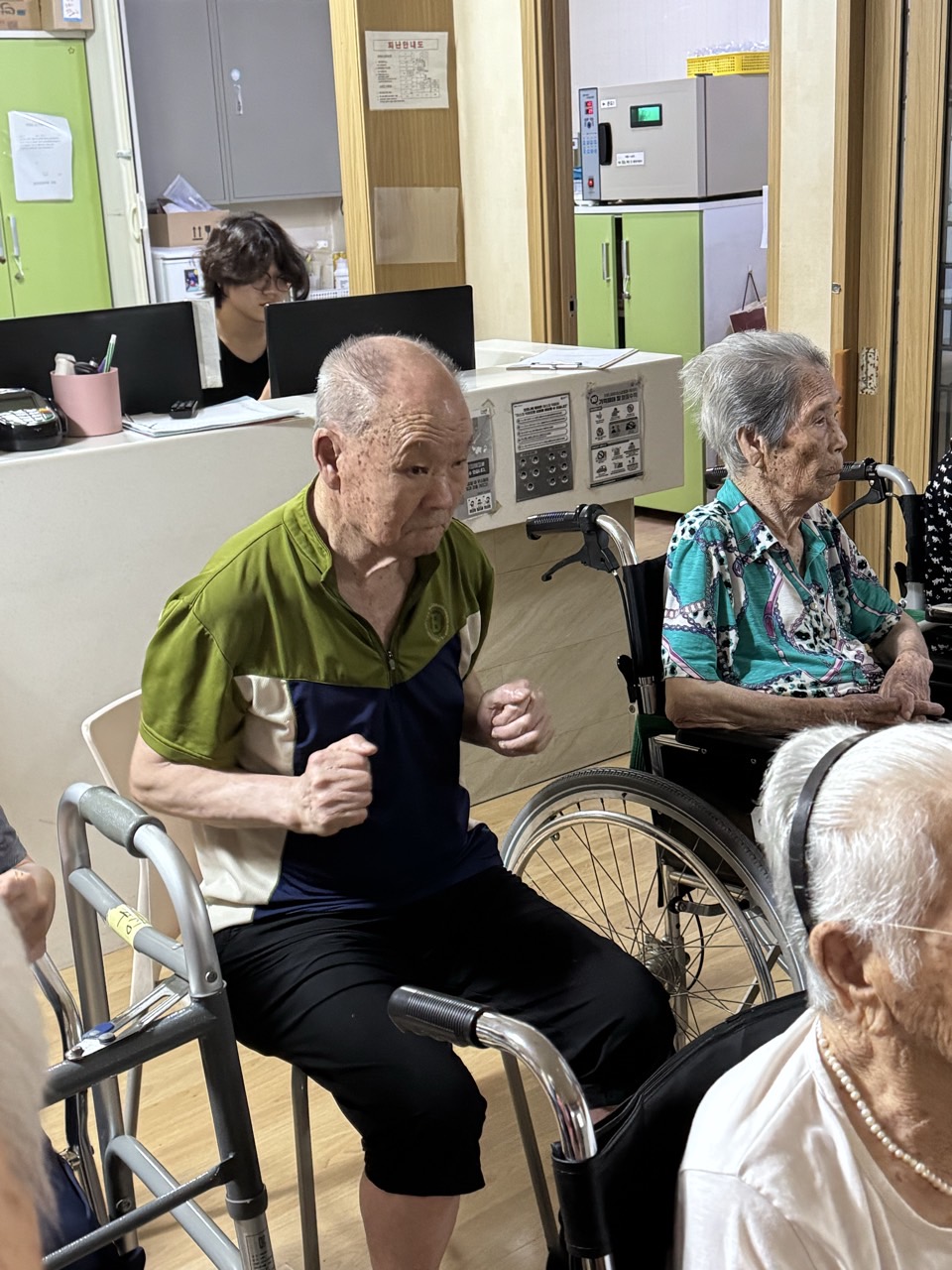 4. 잘 안되는 어르신들을 옆에서 도와준다.