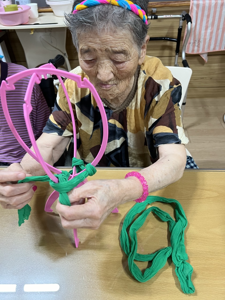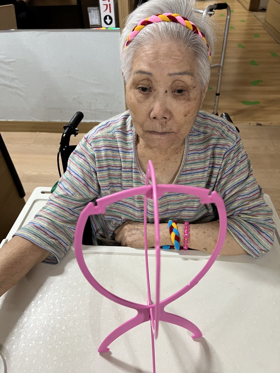 스텐드에 실을 따고 역고 걸치고 짜고 격자 놀이등 다양한 활동을 해본다.