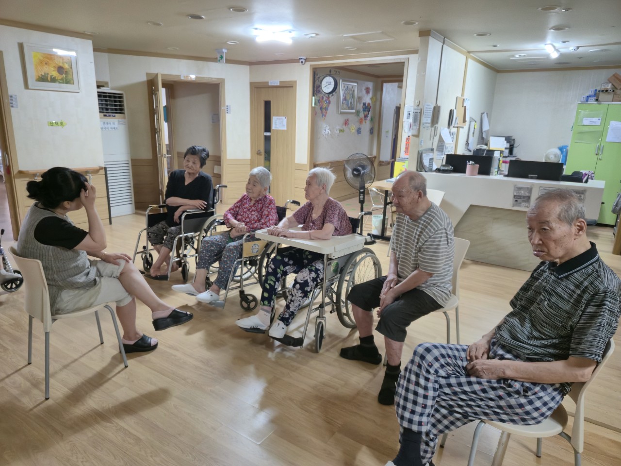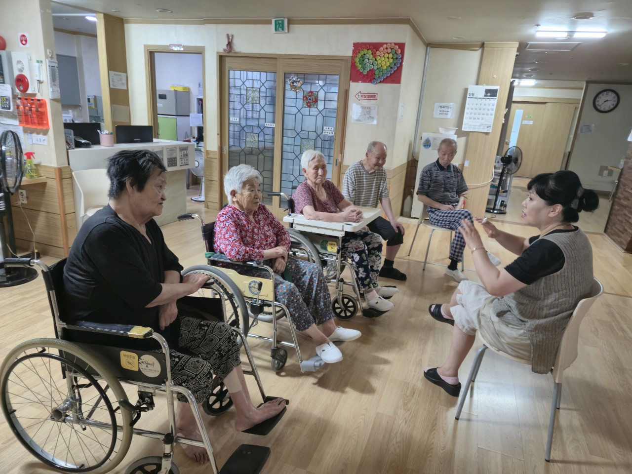 0726(토) 오늘도 어김없이 토욜 어르신들 노래 소리에 요양원 전체가 환해 졌어요. 함께 부르는 노래가 추억이 됩니다~~