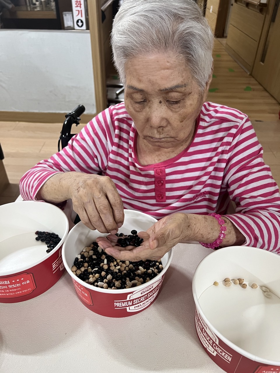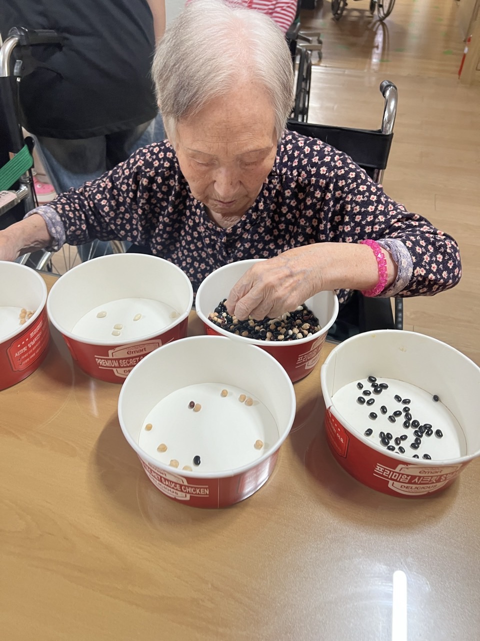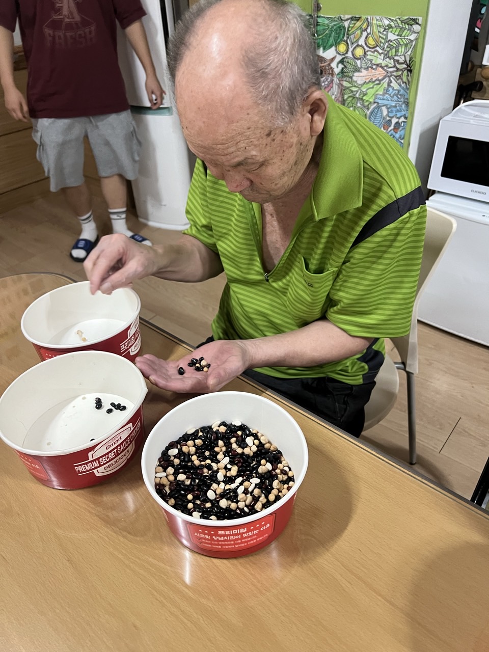 2. 각자 콩과 콩바구니를 나눠 드리고 콩을 고를수 있게 도와드린다