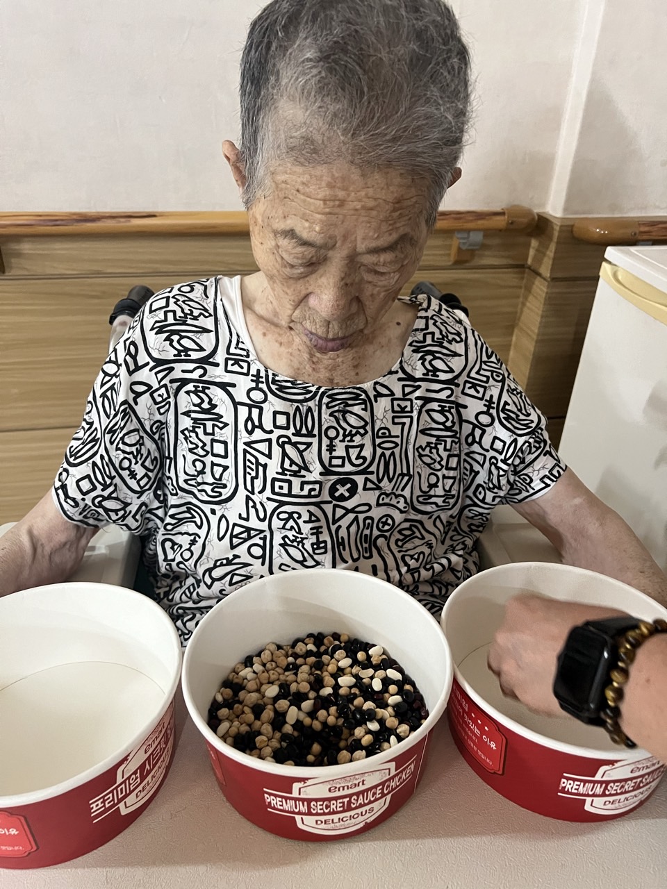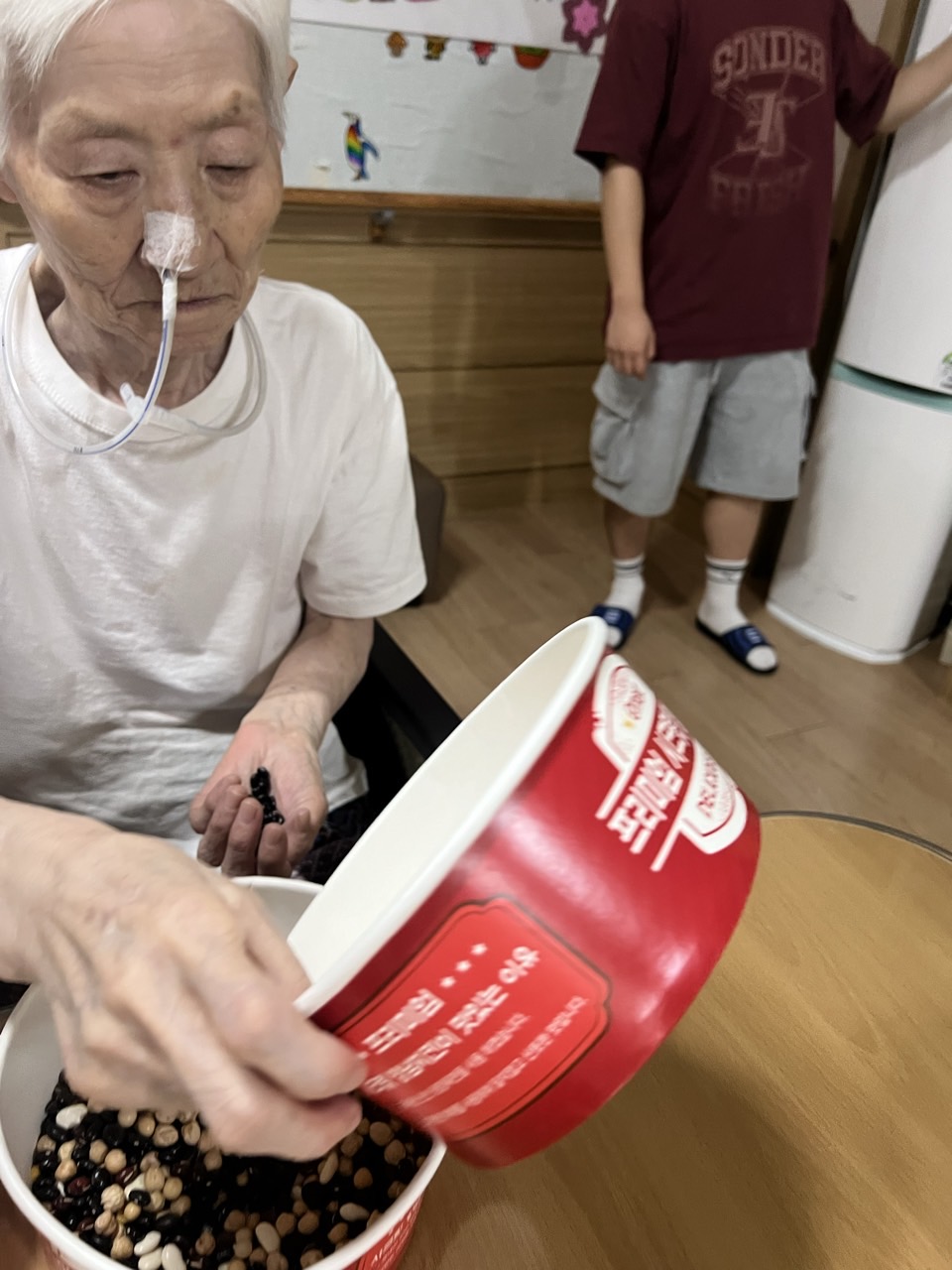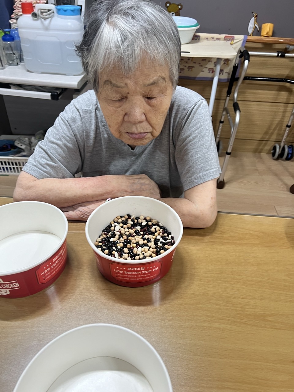 2. 각자 콩과 콩바구니를 나눠 드리고 콩을 고를수 있게 도와드린다