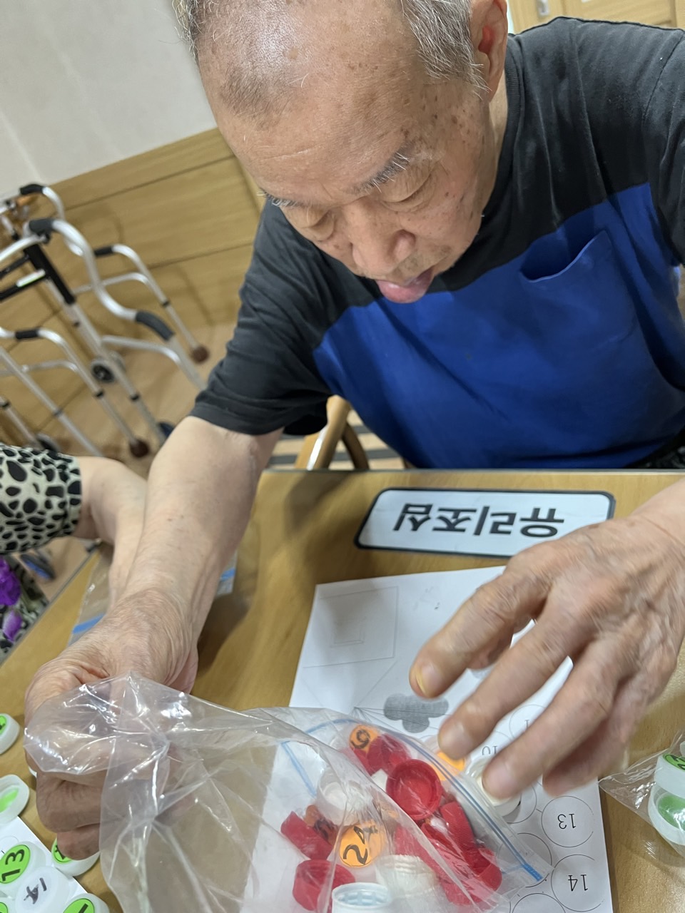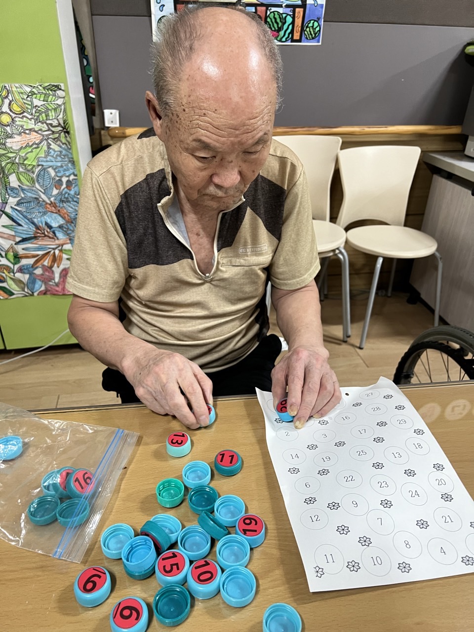 2. 활동지에 쓰여진 숫자순서에 맞추어 수가 적혀진 병뚜껑을 일치시킨다.