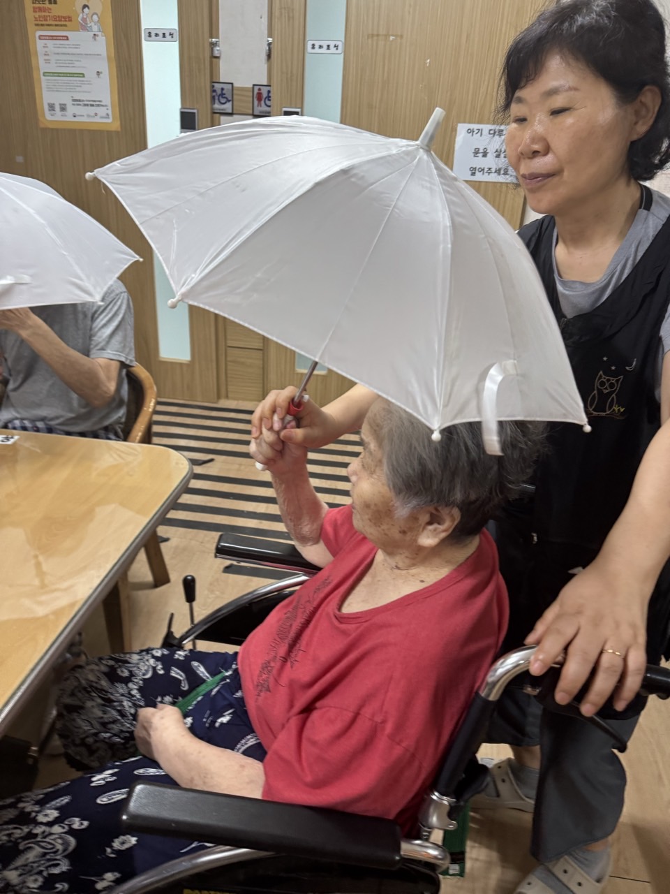 우산 속으로 꽃송이를 던지며 손의 움직임과 마음을 피우는 신체활동을 할 수 있다.