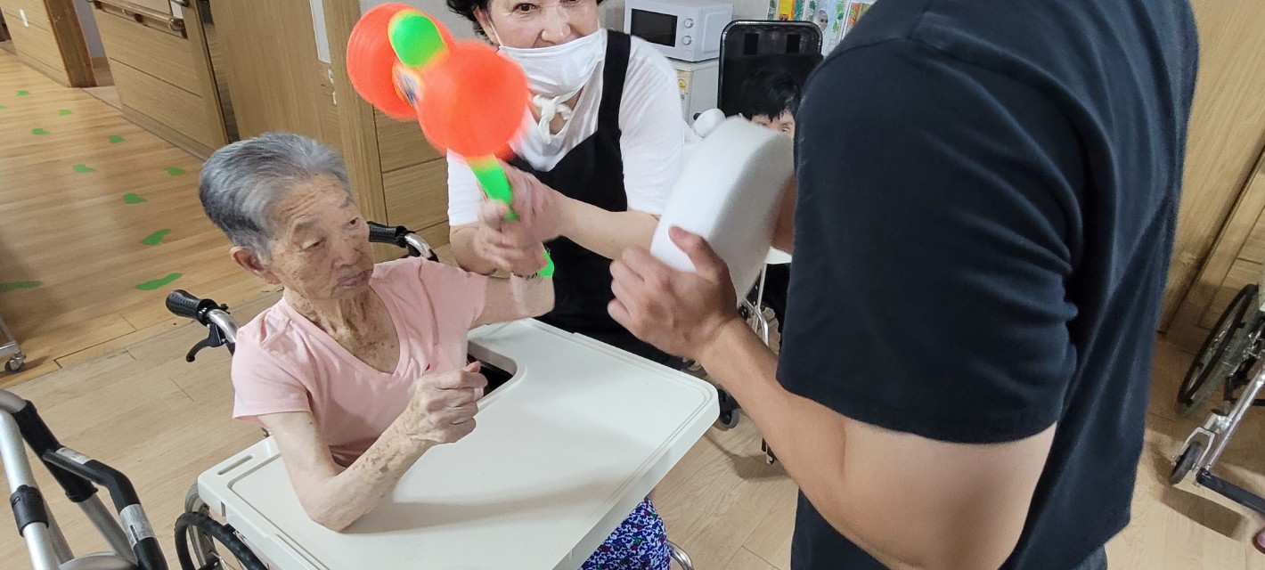 어르신들께서 깃발 3색을 아주 잘 인지하셨고 올리기 내리기를 너무 잘하셨습니다. 가위바위보 놀이도 뿅망치를 두드리시며 즐거워 하셨습니다.^^