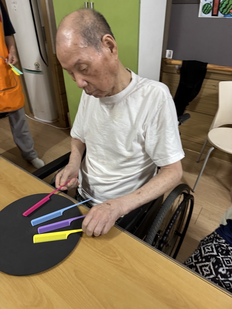 빗으로 마사지를 해보고 같은 색끼리 나눠볼수 있다.