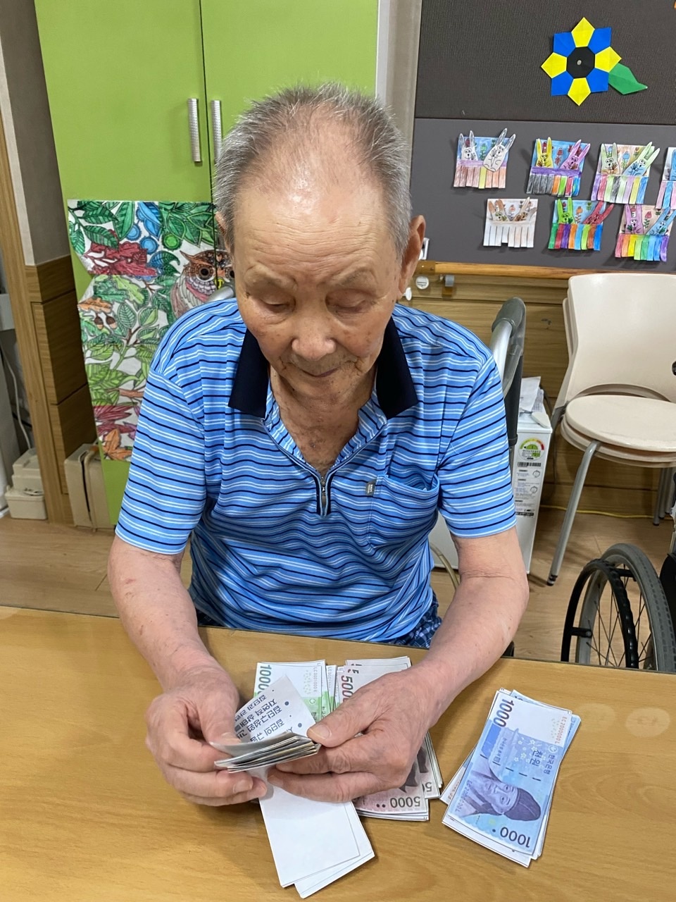 어르신들중 2/3정도는 돈을 인지하시고 1/3 정도분들은 돈을 정확히 셈도 하셨습니다.
