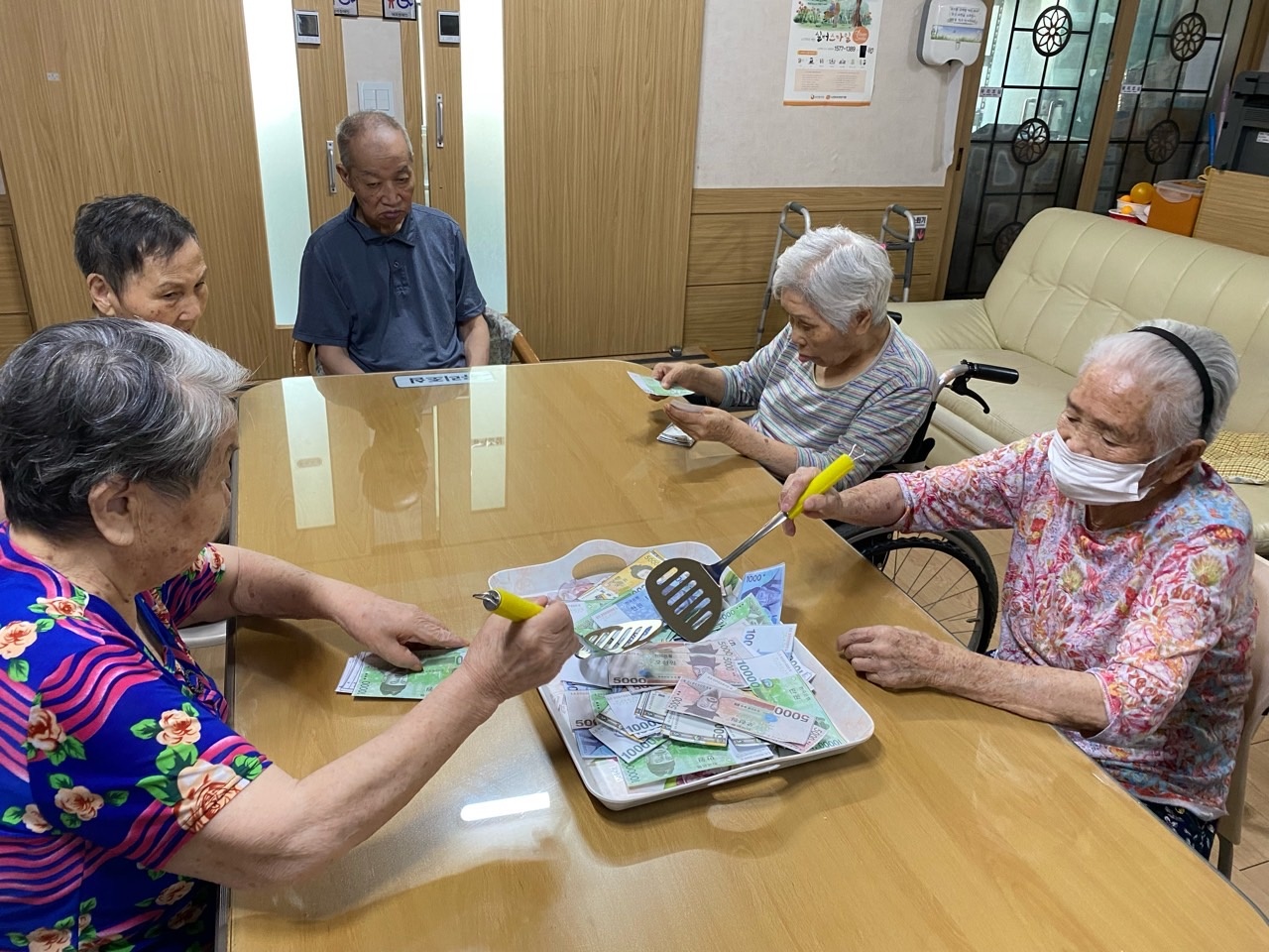 어르신들중 2/3정도는 돈을 인지하시고 1/3 정도분들은 돈을 정확히 셈도 하셨습니다.