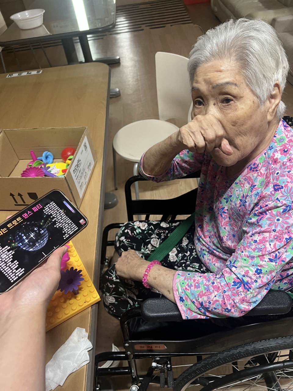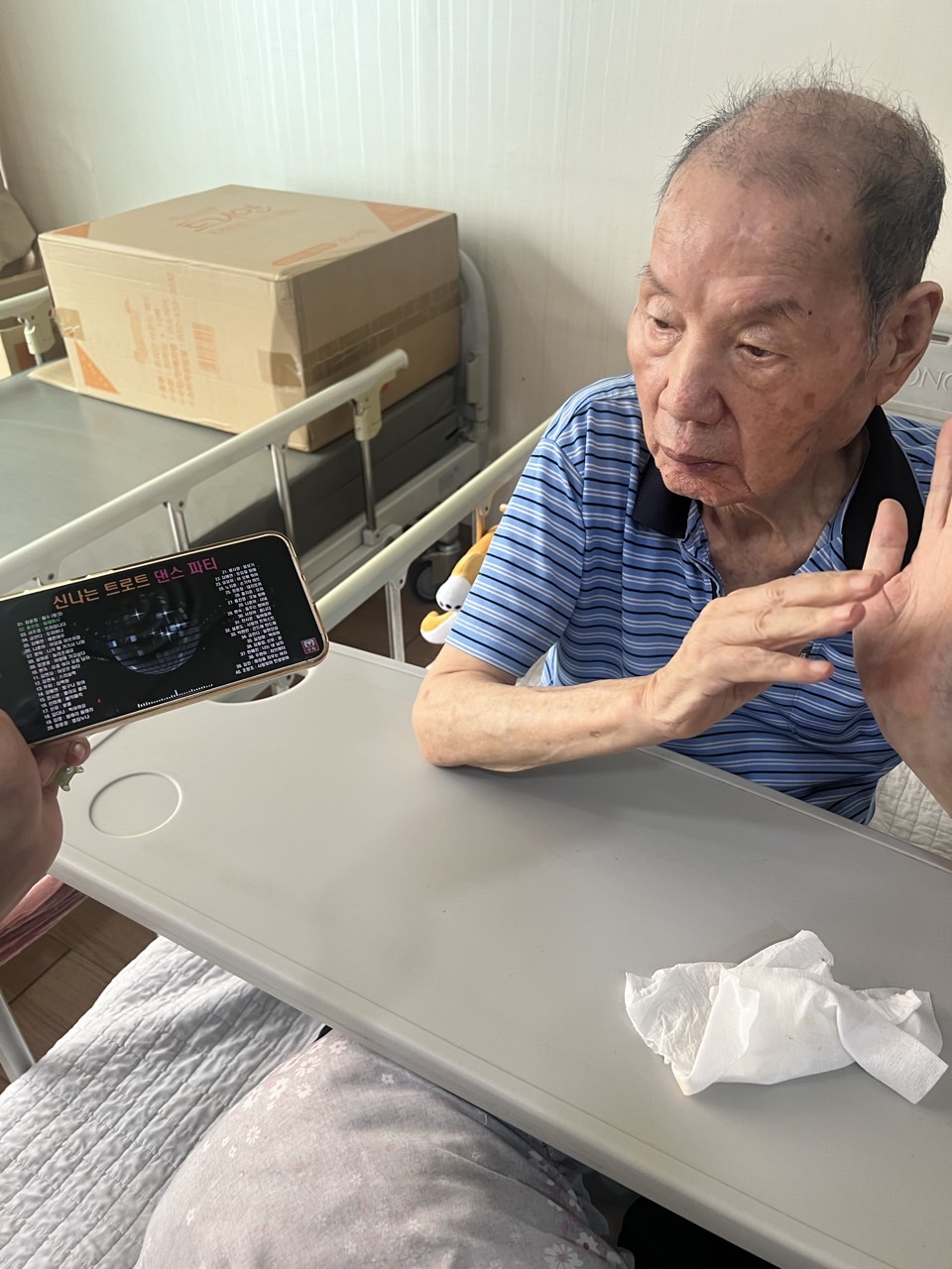 2. 어르신들이 음악을 들으며 편하게 휴식하시고, 마음이 편안해 지도록 돕는다.