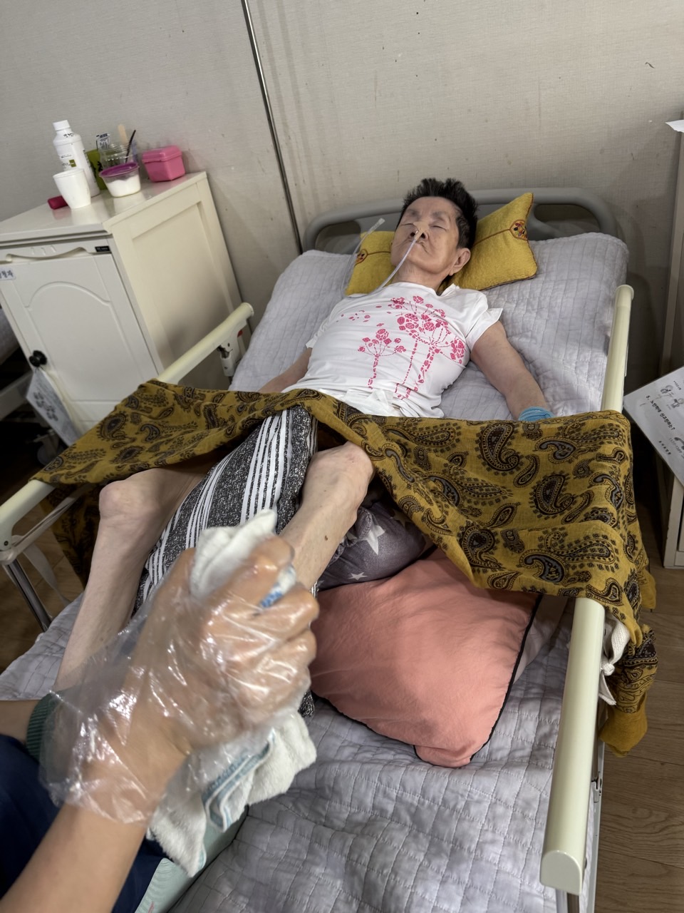 ⑤ 혈액순환을 위해 용천부위를 누르며 마사지한다.