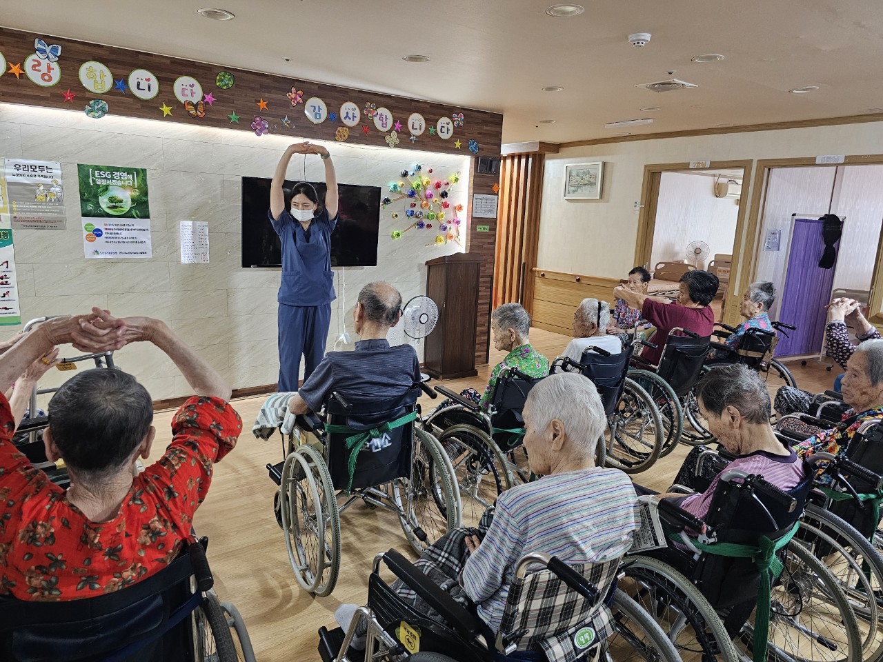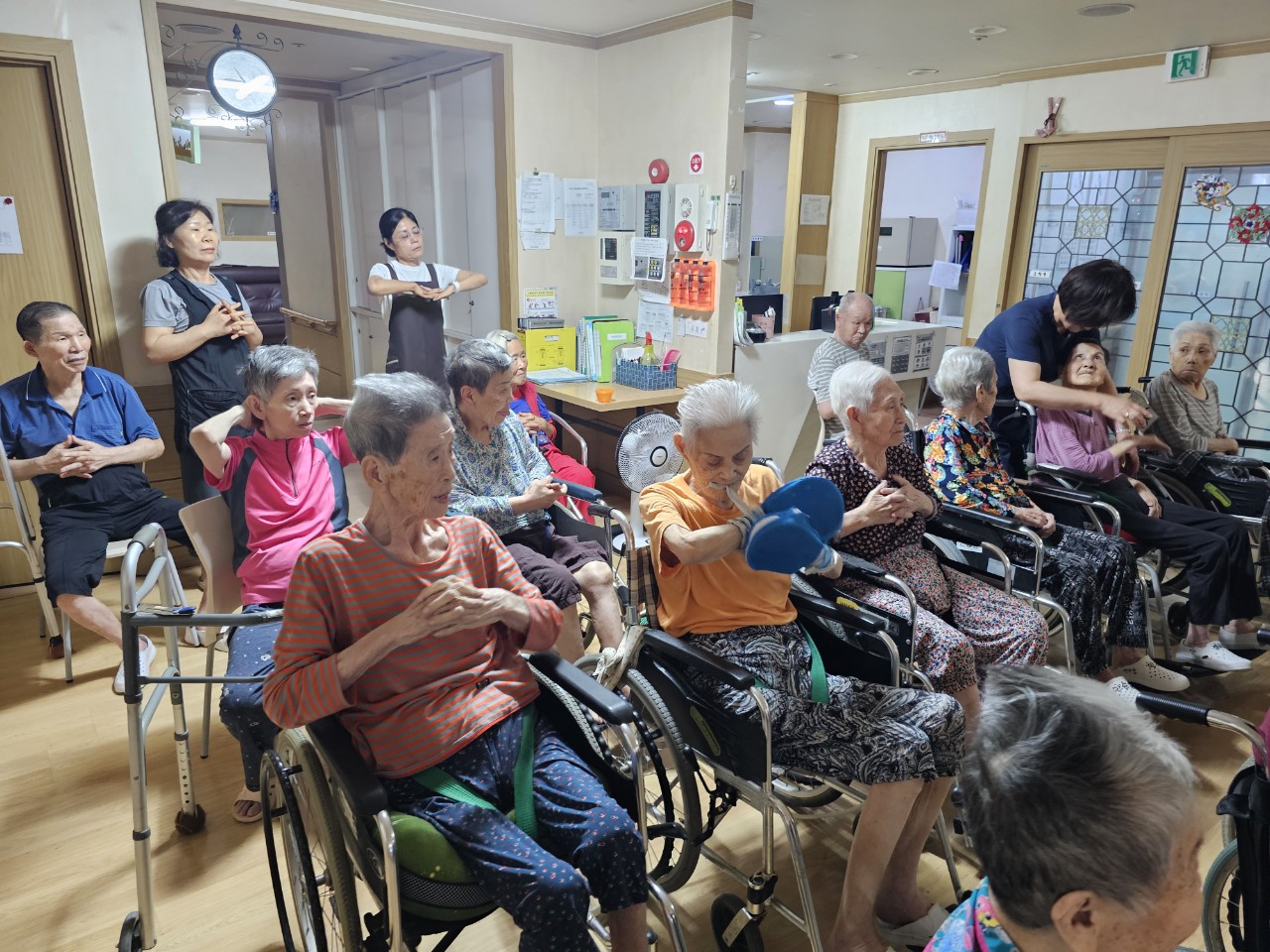 ② 운동은 단순하면서도 리듬감 있게 반복되는 동작으로 구성하고 음악을 함께 하는 것이 좋다.