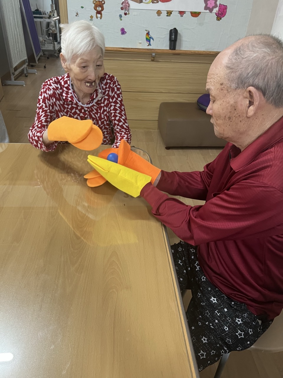 손인형을 사용해 구상한 이야기를듣고, 함께 웃고 즐기는활동을 해본다.