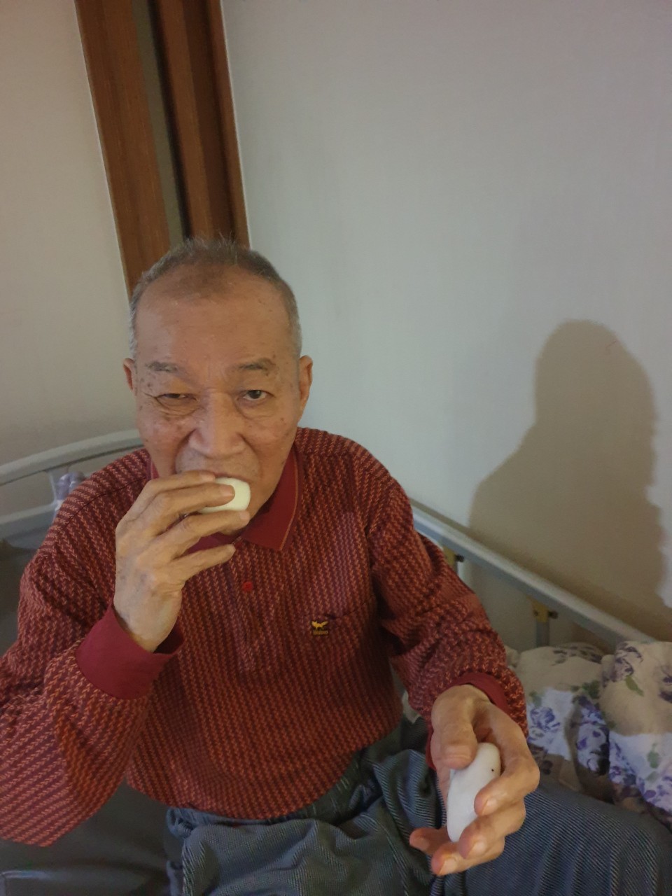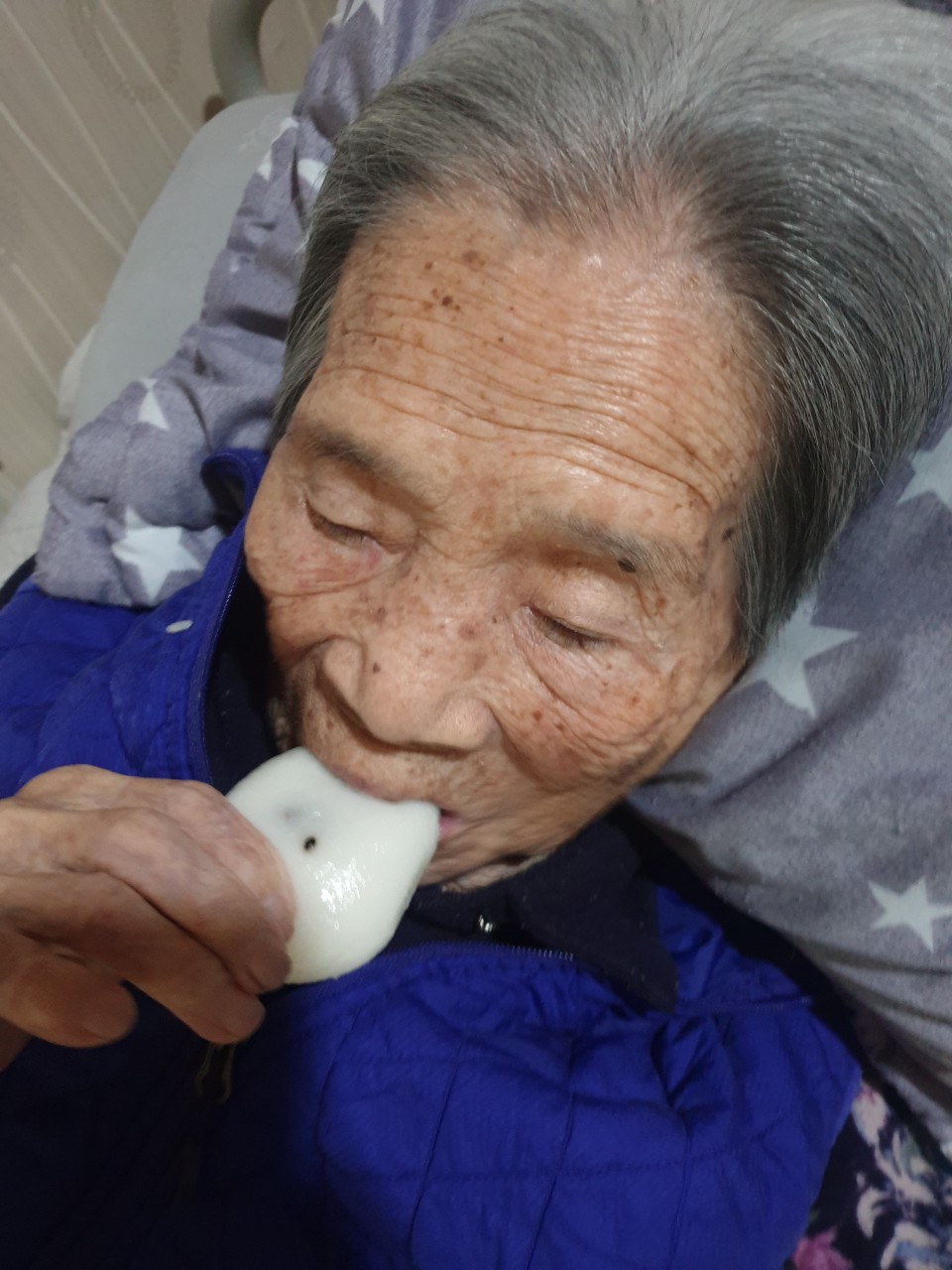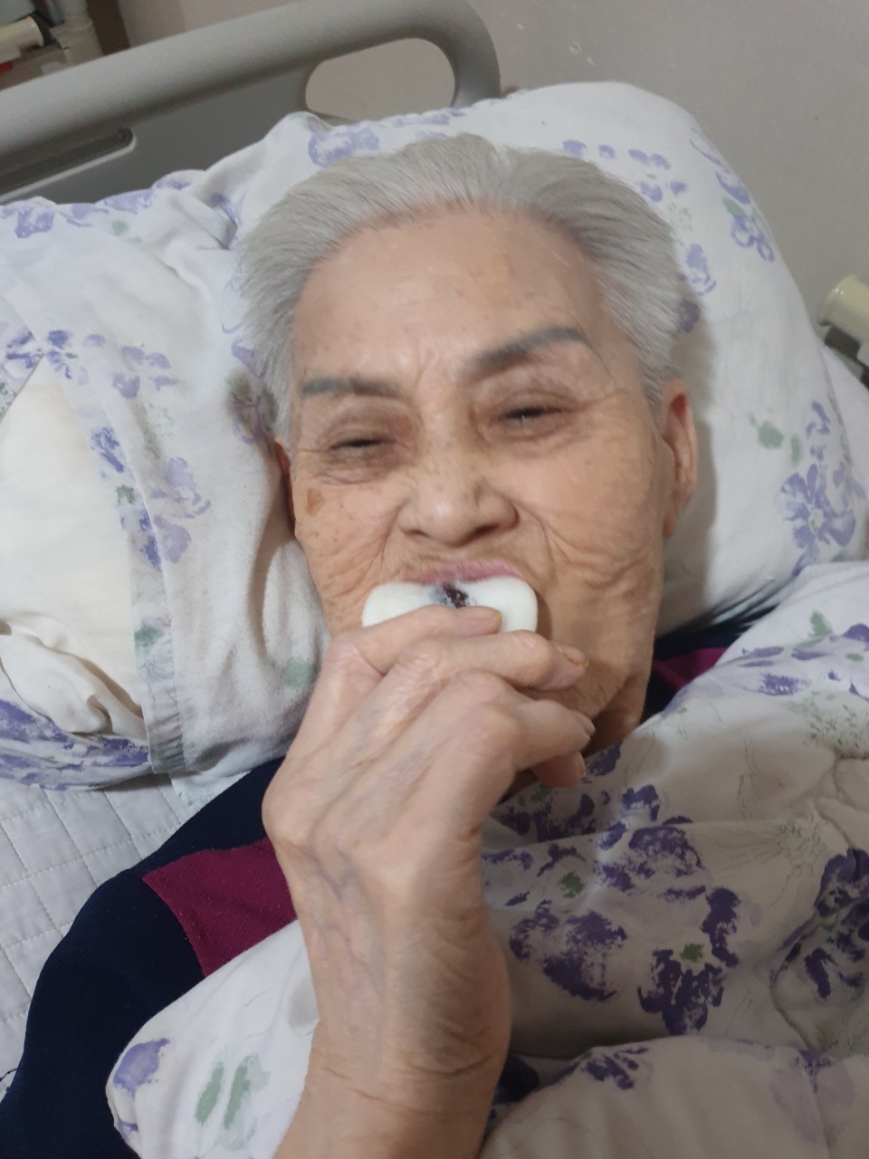 1104(월) 초지어르신들 야간 간식은 기정떡입니다 부드럽고 달콤합니다 맛나게드시고 안녕히 주무세요♡