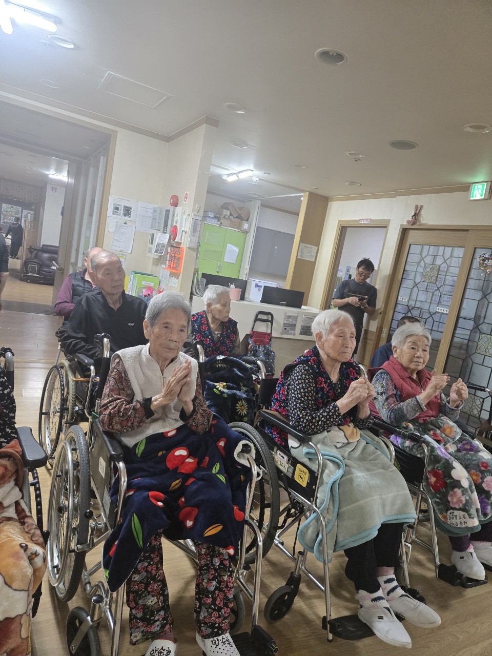 1. 어르신들을 본관 홀에 모신다.