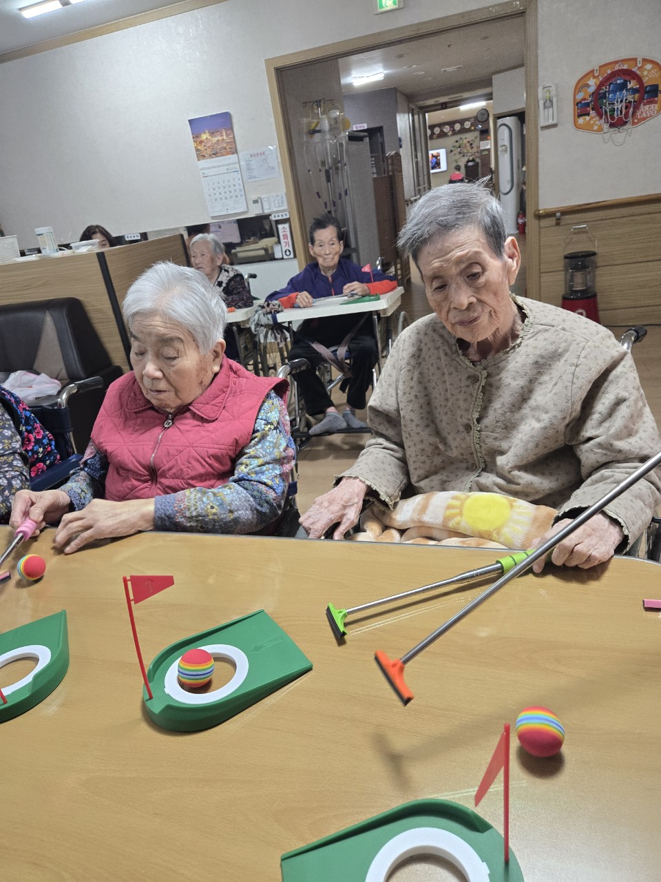 공을 쳐서 골프홀에 넣으며 직선·반원·지그재그 길을 따라가는 신체협응 활동을 할수 있다.