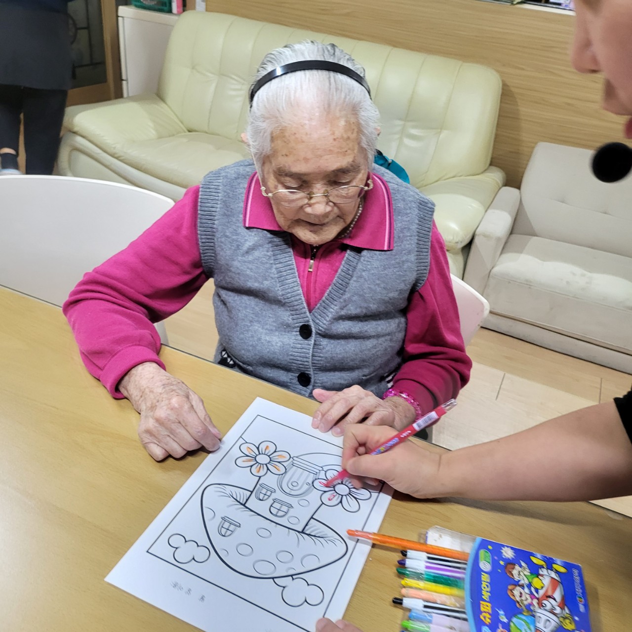 1. 어르신들을 프로그램실로 모신다
