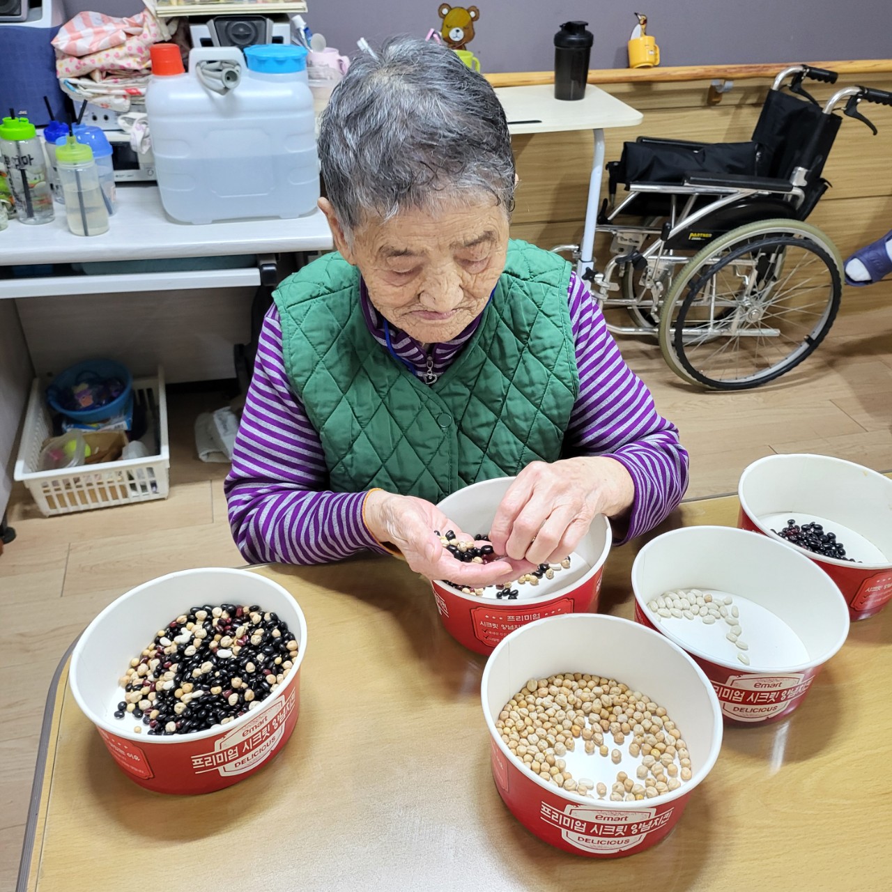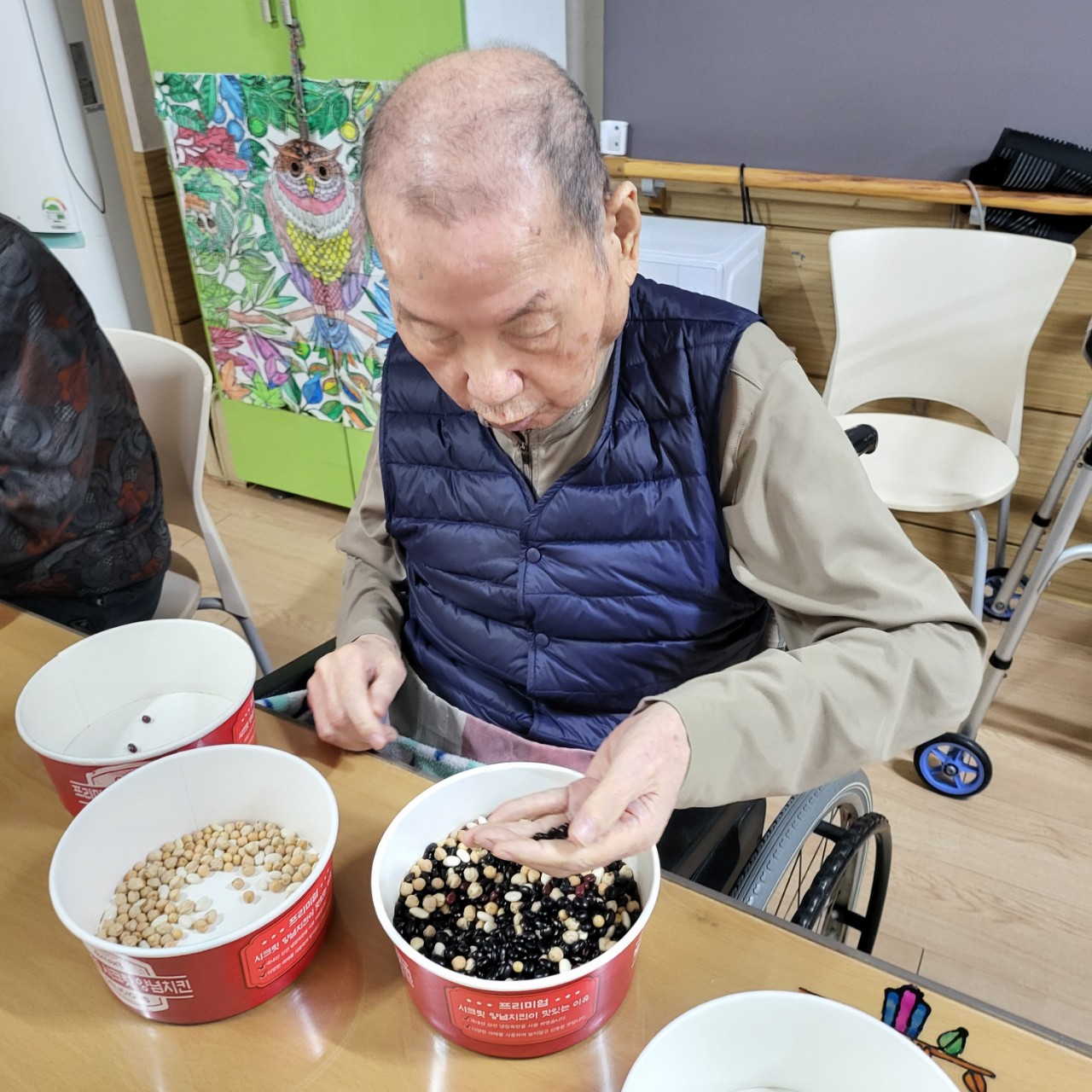 콩고르기를 하며 소근육을 자극시키며 여가활동을 즐긴다.