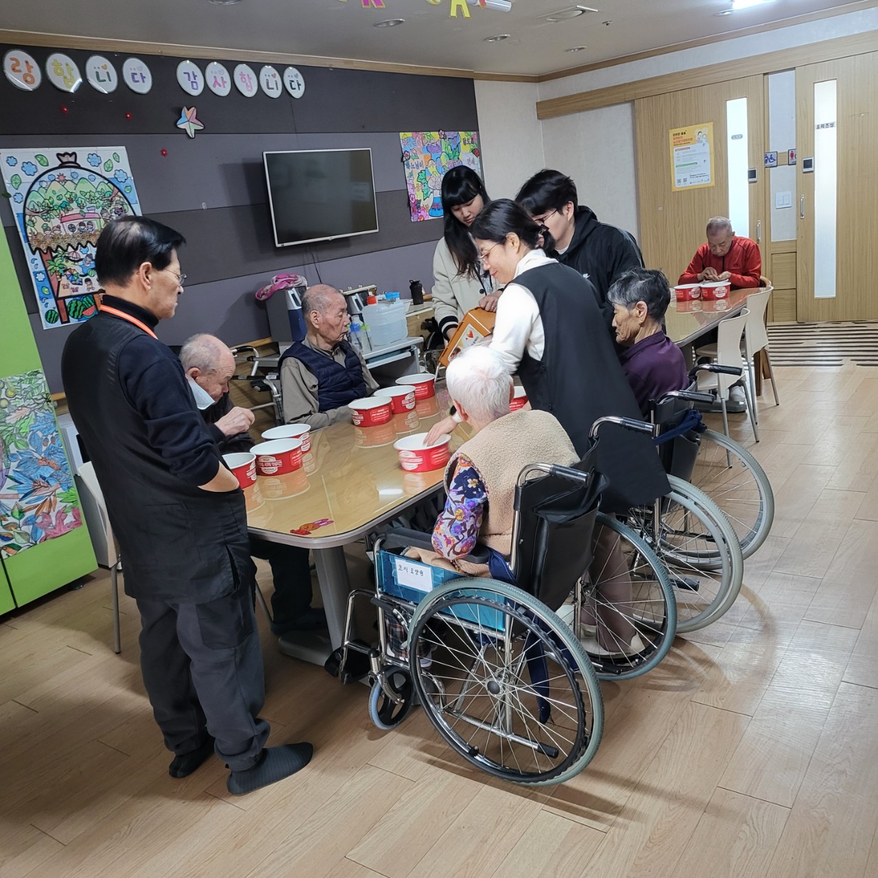 1.어르신들을 프로그램실로 모신다 2.준비물을 나눠드린 후 어르신들에게 설명 후 진행한다 3.안전사고가 일어나지 않도록 옆에서 지켜보며 진행한다 4.마무리