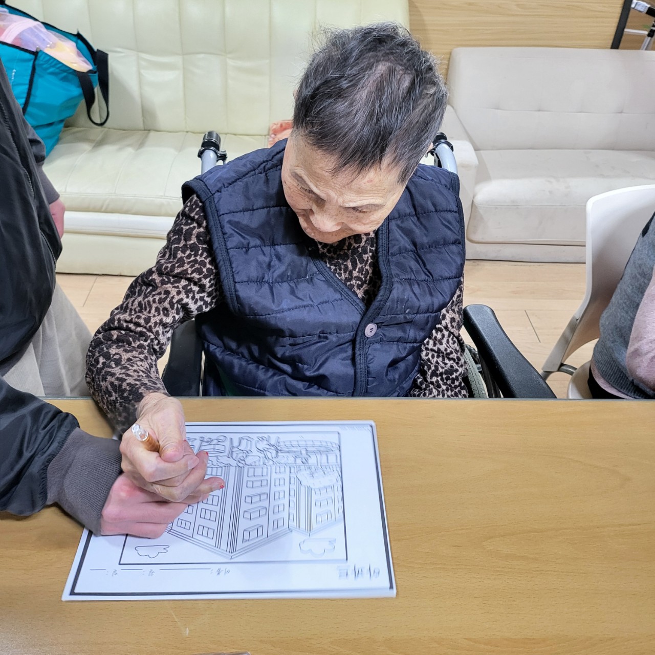 1. 어르신들을 프로그램실로 모신다