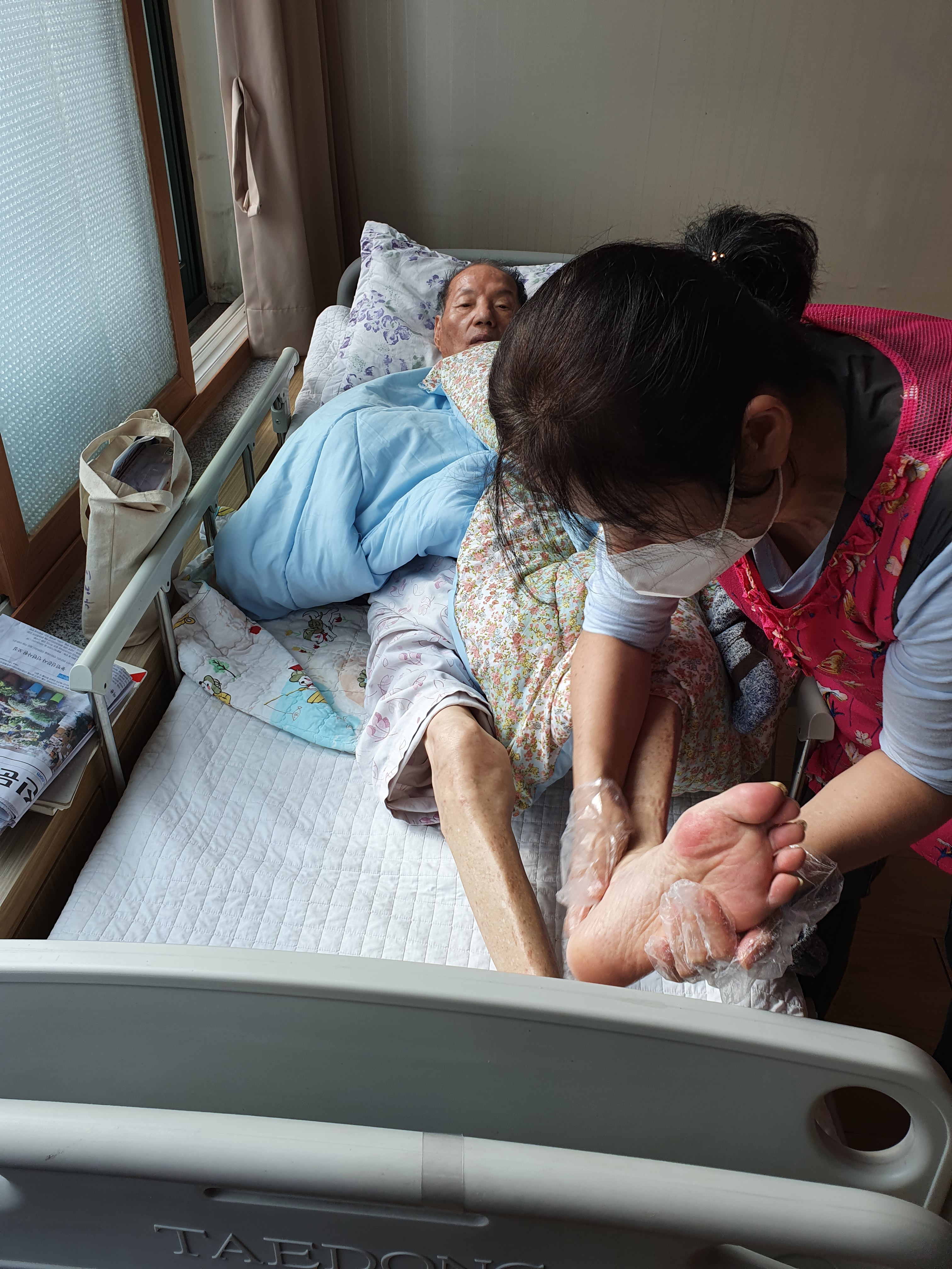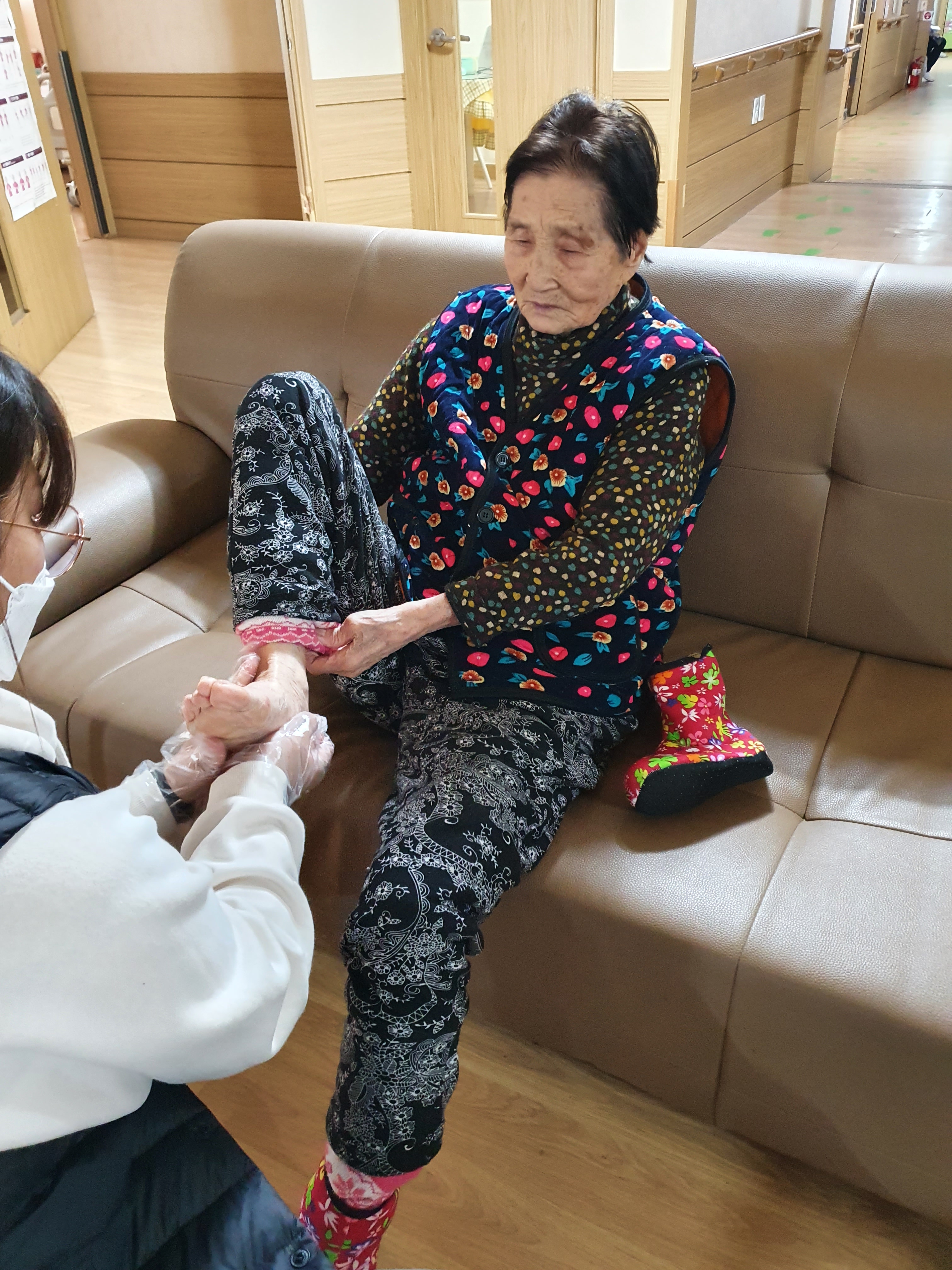 우리 모든 어르신들에게 로션을 발라드리며