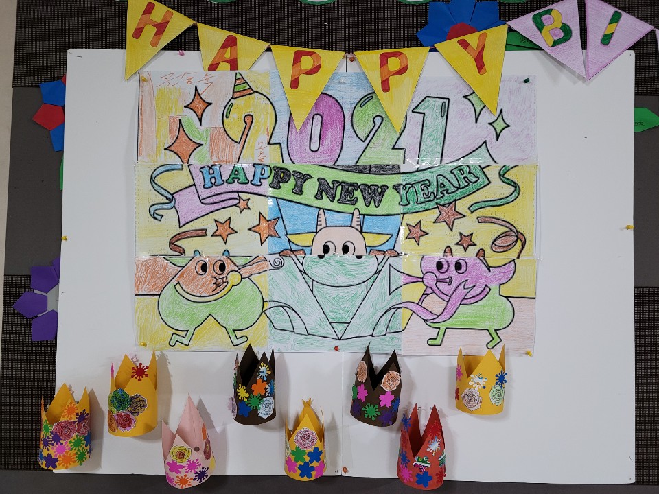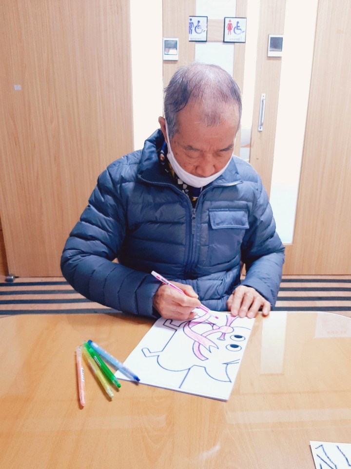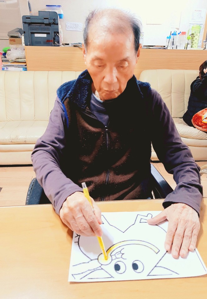 완성된 전체 그림을 보고 즐거워 하십니다.