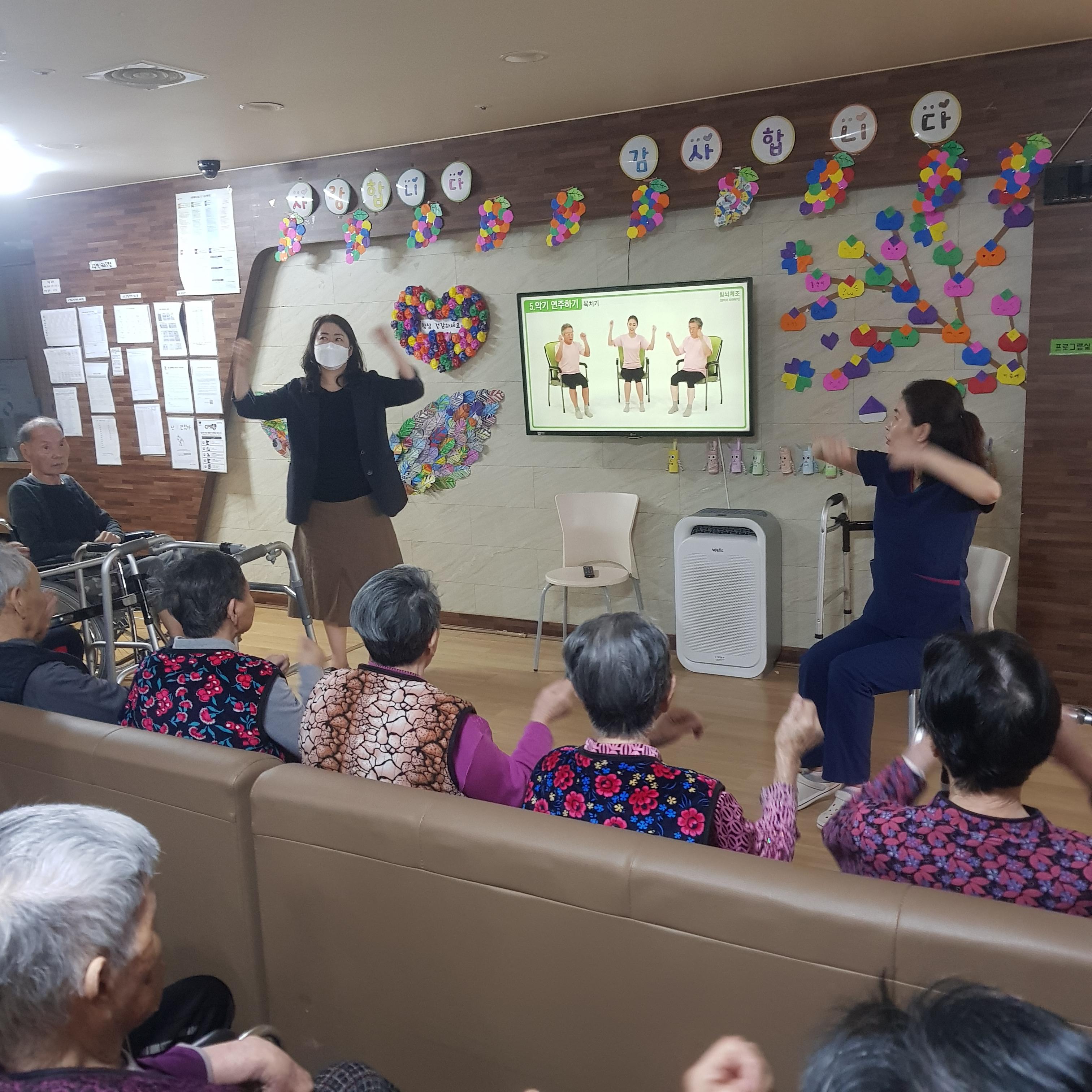 힘뇌체조가 끝난 후에는 물리치료선생님과 노인건강체조를