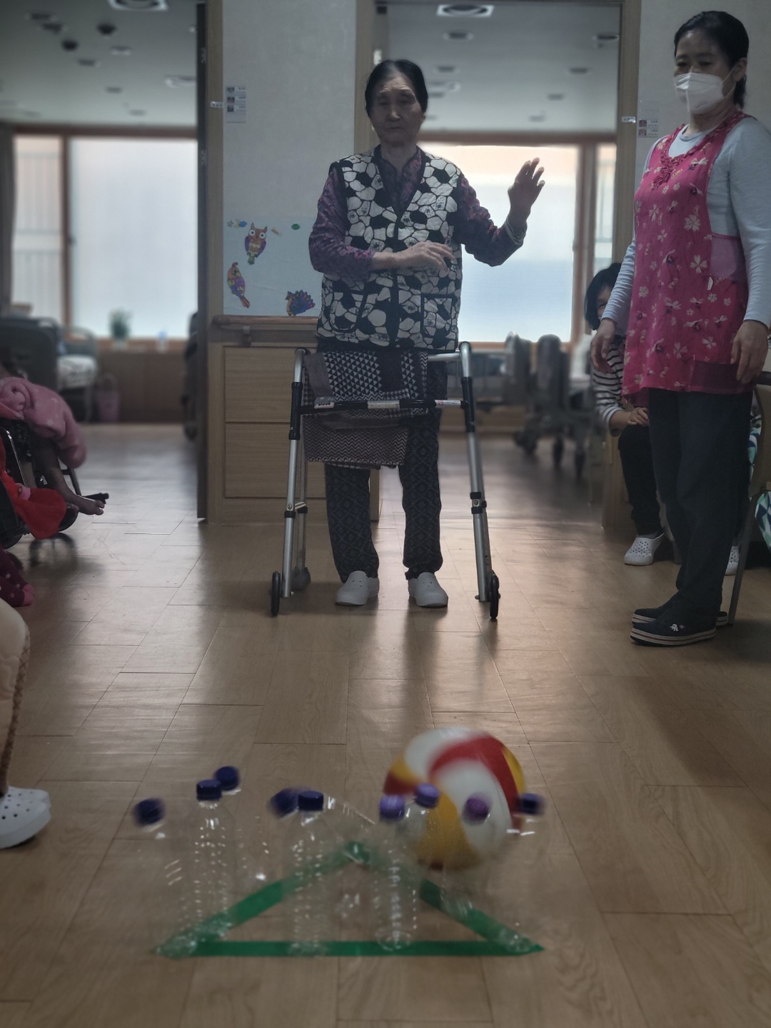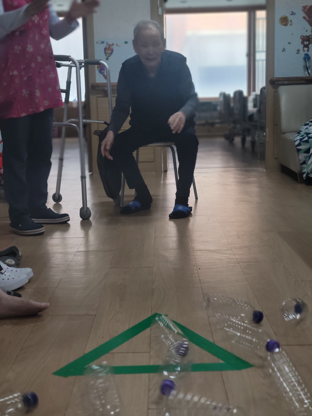 페트병이 와르르 넘어질 때 스트레스도 함께 날려 버리고, 환하게 웃으며 즐거워 하십니다.