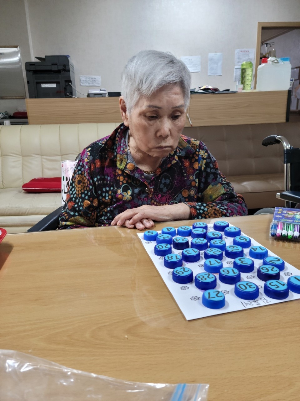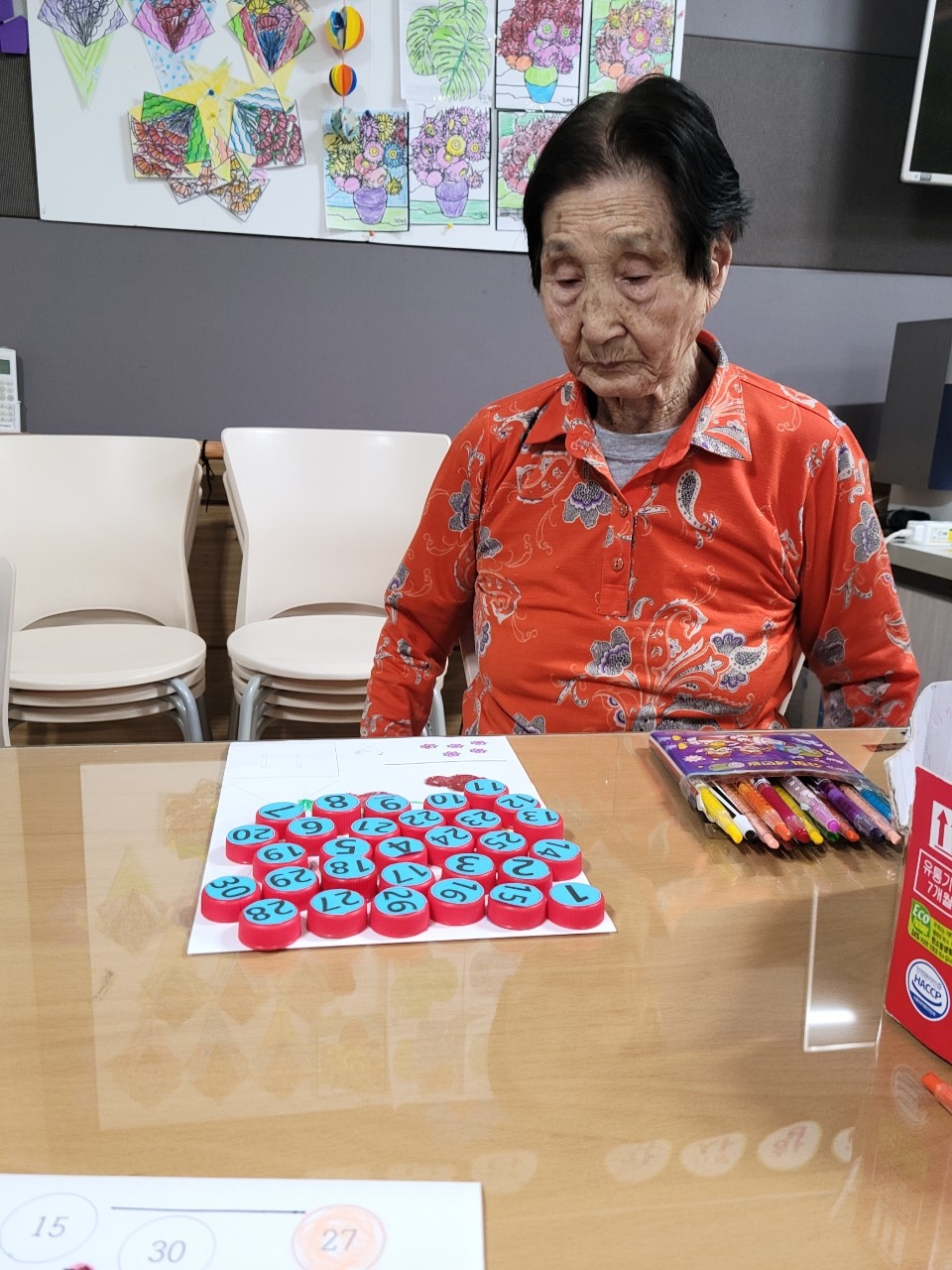 병뚜껑 모양의 그림을 색칠하고 병뚜껑을 순서대로 놓아봅니다.