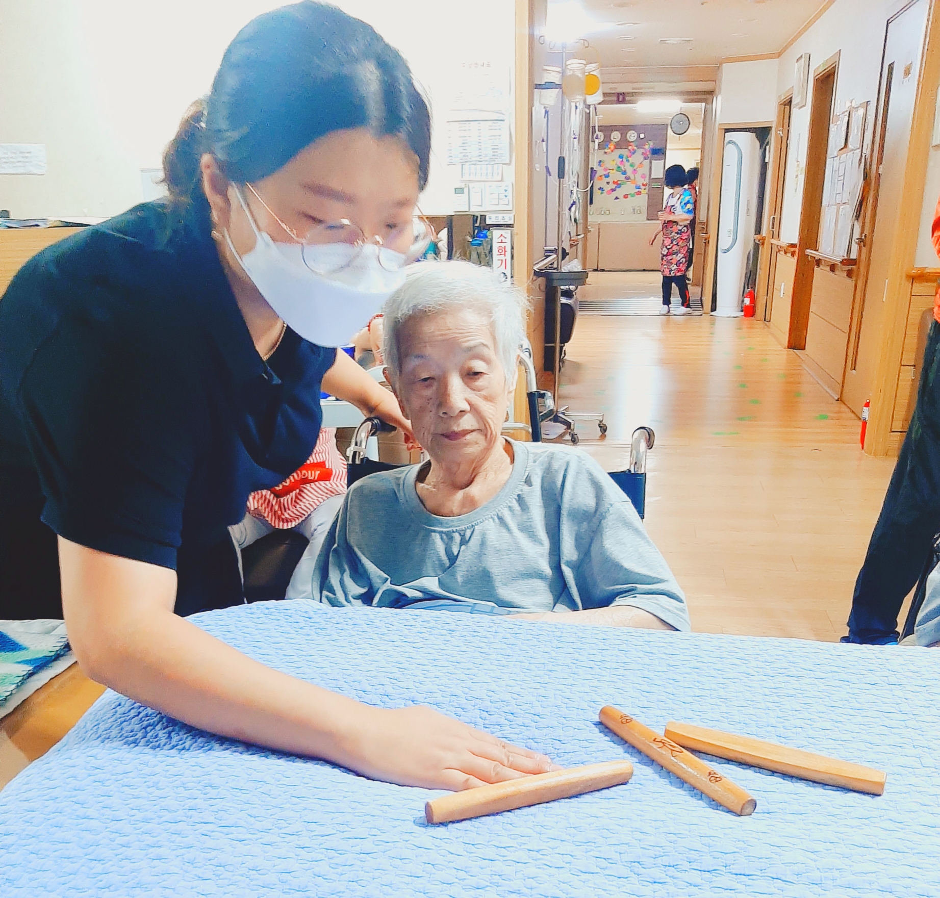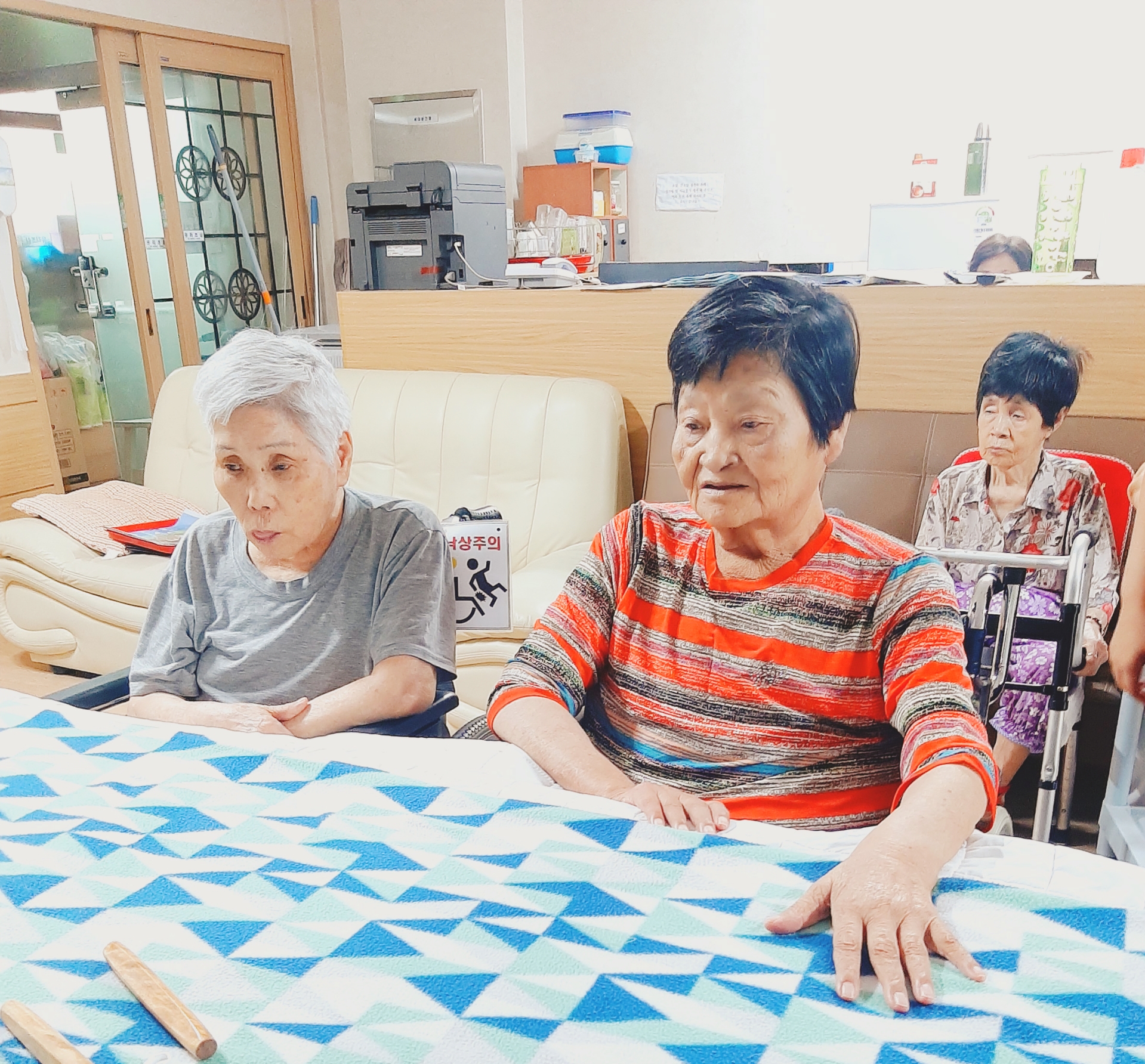 오늘 오후 여가프로그램 시간엔 어르신들이 흥미로워 하시는