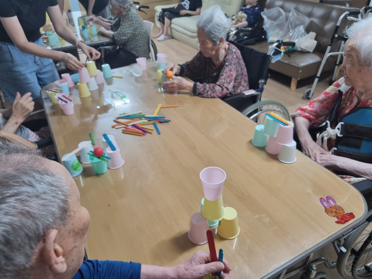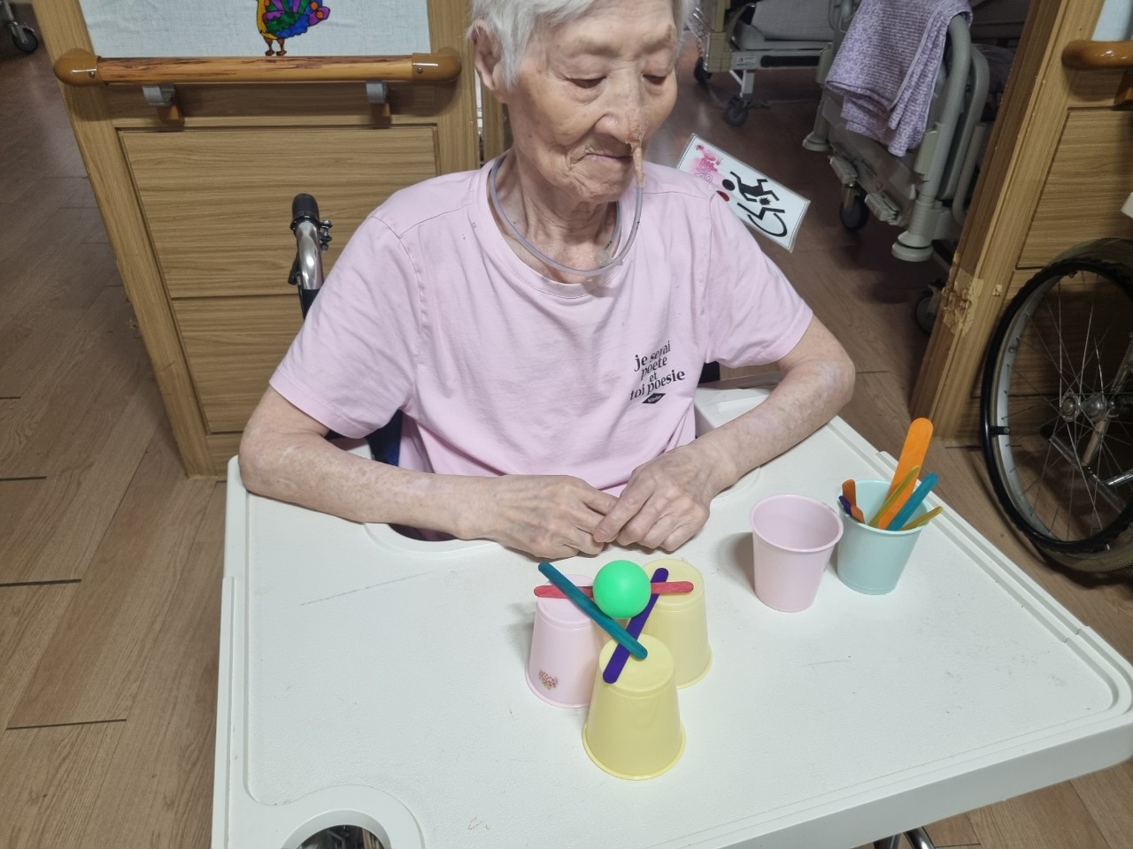 종이컵과 아이스크림막대를 이용하여 탁구공을 세우며 어르신들의 균형감각을 키우는 프로그램입니다. ^^