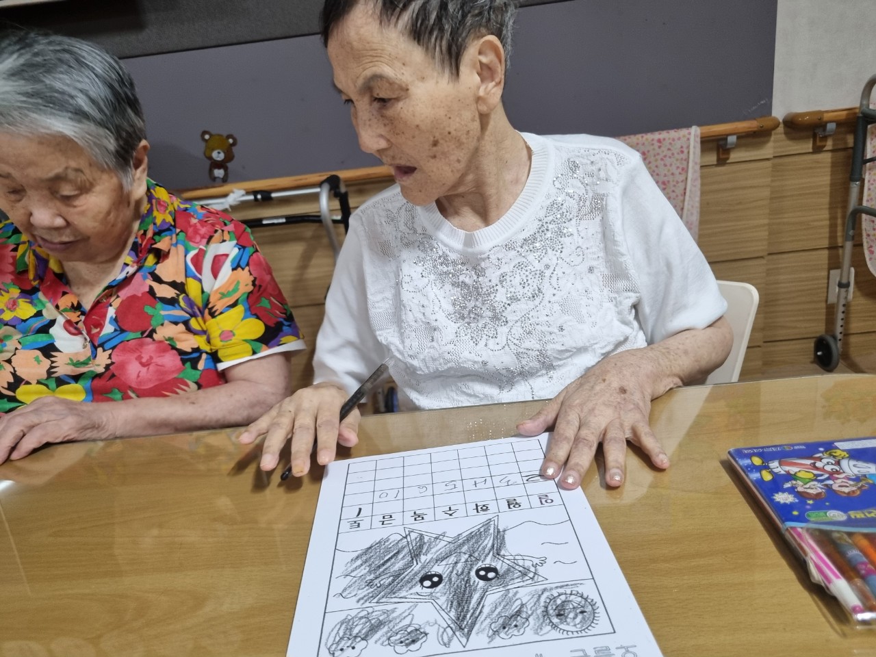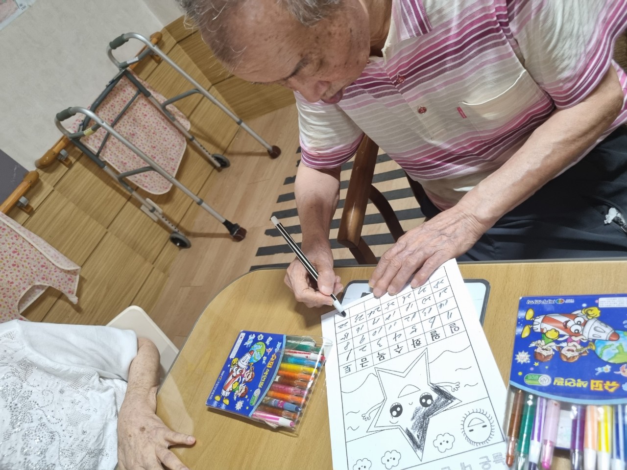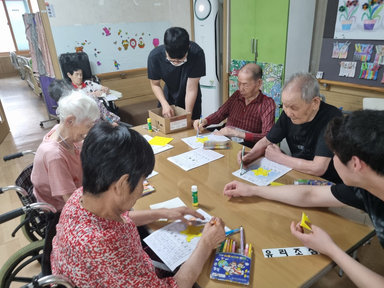 어르신들께서 달력을 잘 보시고 숫자를 정확히 쓰시며 밤하늘 별을 이쁘게 꾸미시면서 즐거운 미술활동을 하셨습니다.