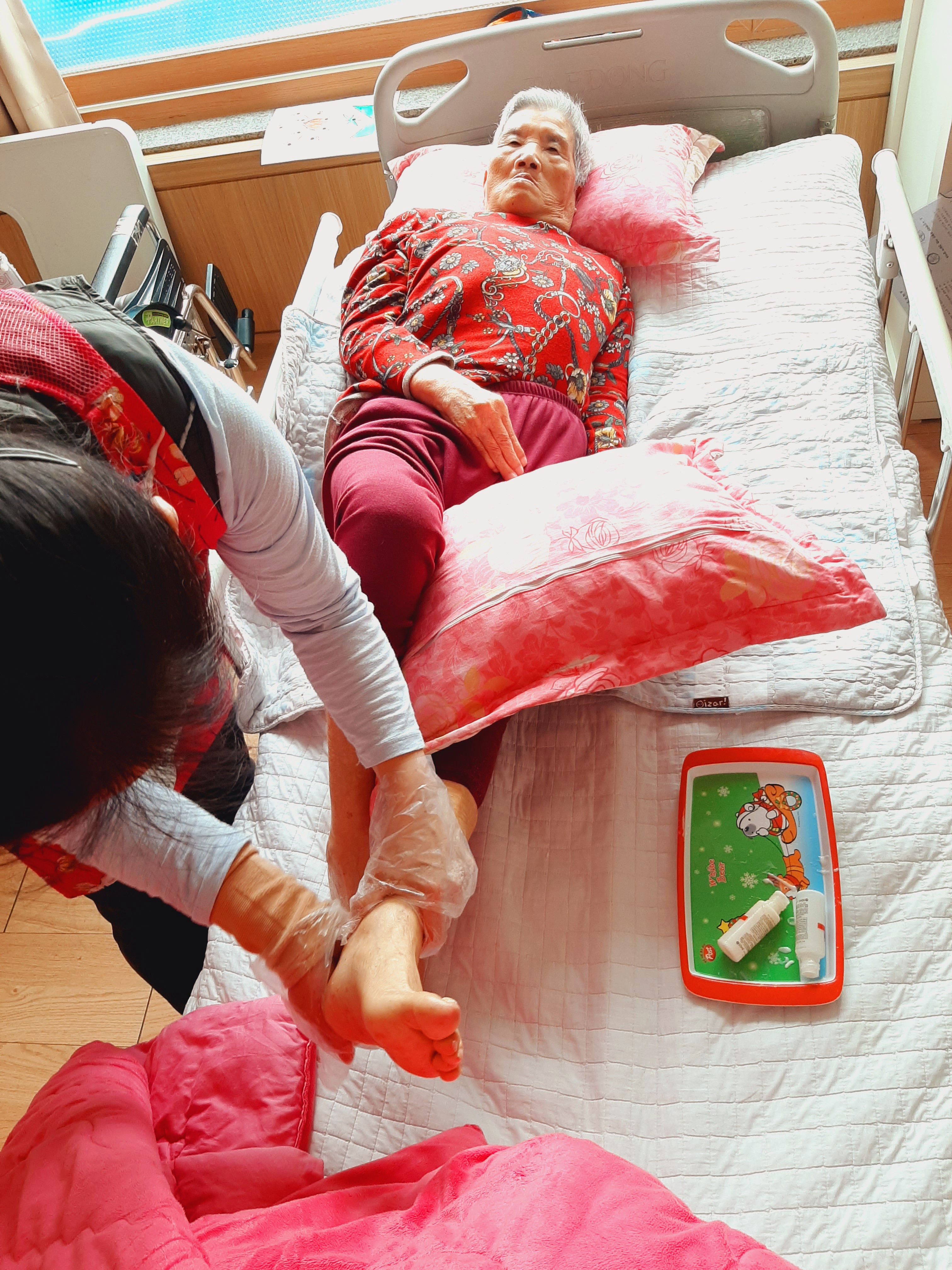 어르신들의 발과 손을 마사지해 드리는 날입니다.