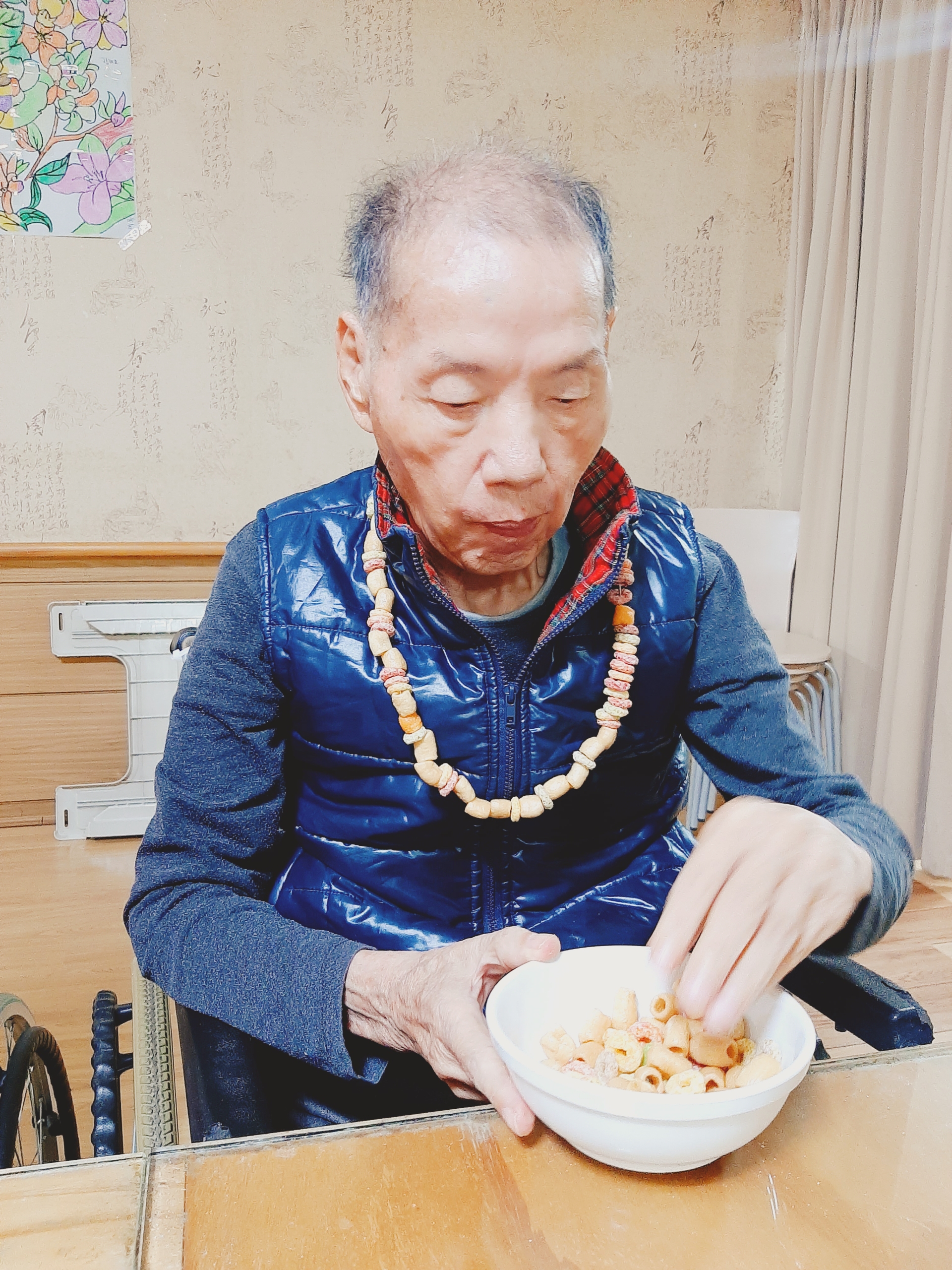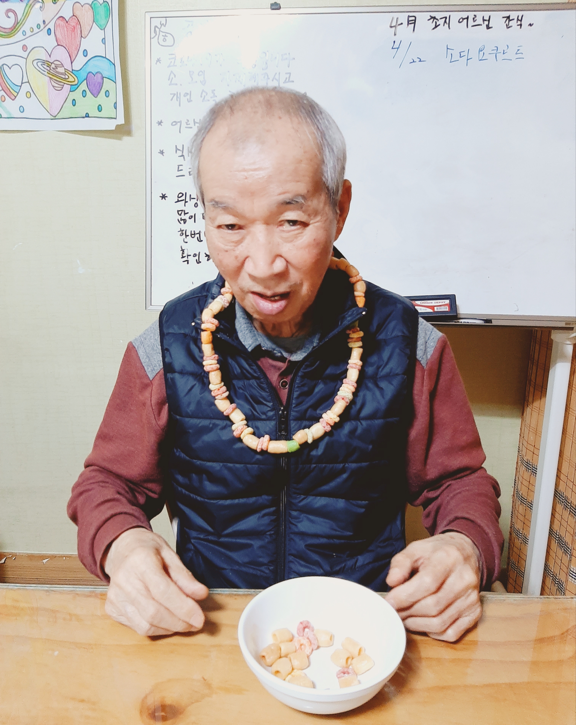 4월 22일 오후프로그램 과자목걸이 만들기를 진행하였습니다