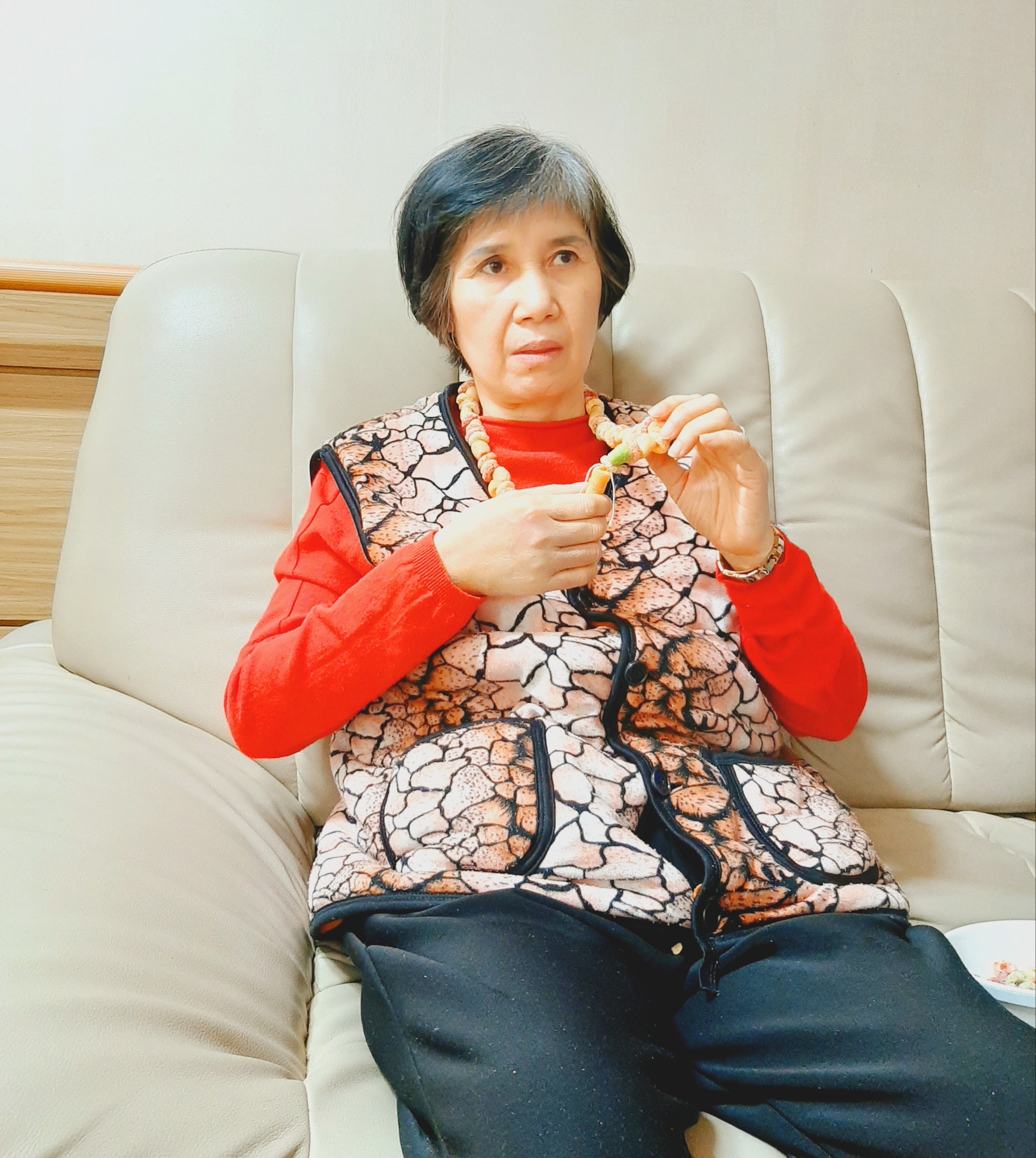 곧 정신을 차리시고 예쁘게 목걸이를 완성하셨습니다