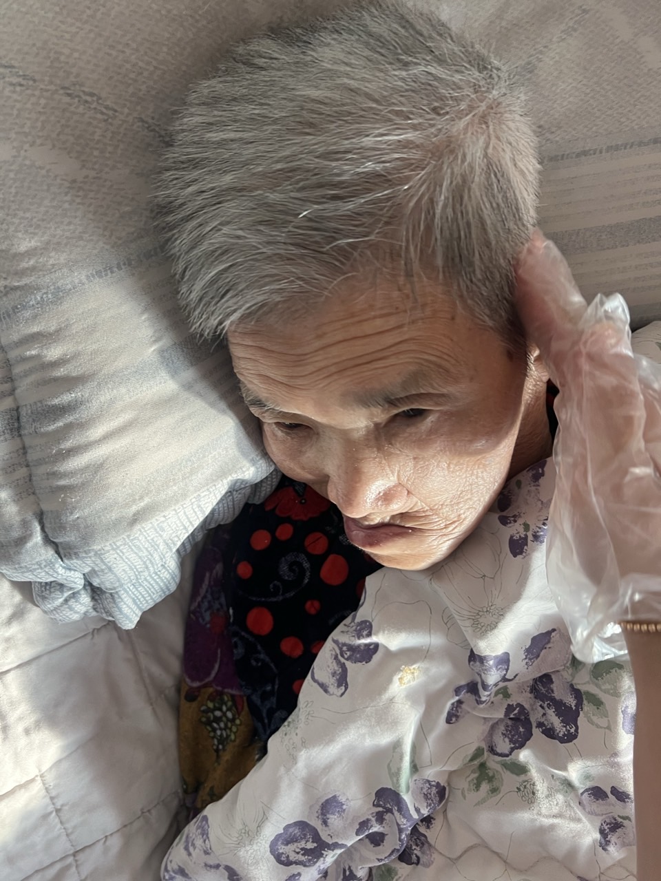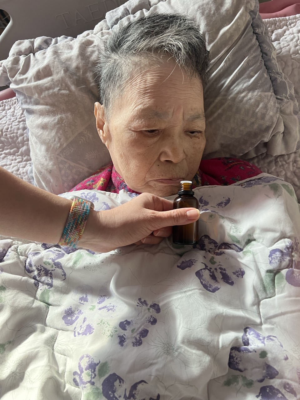 ② 진행 : 코에 오일 냄새를 맡게 하고, 관자놀이에 롤링기법으로 마사지를 해준다.