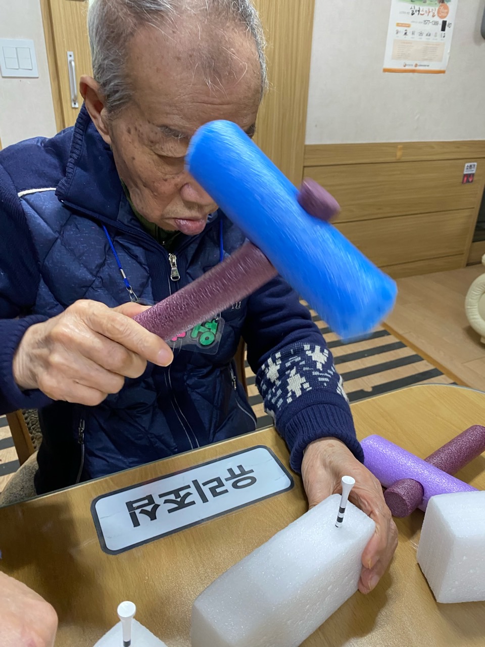 공을 망치로 터치해 정확한 위치에 떨어트릴 수 있도록 손목 힘의 강 약을 조절 할 수 있다