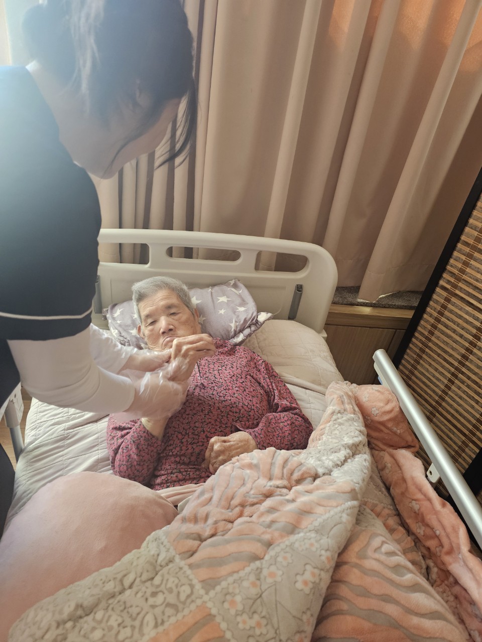 ② 진행 : 코에 오일 냄새를 맡게 하고, 관자놀이에 롤링기법으로 마사지를 해준다.