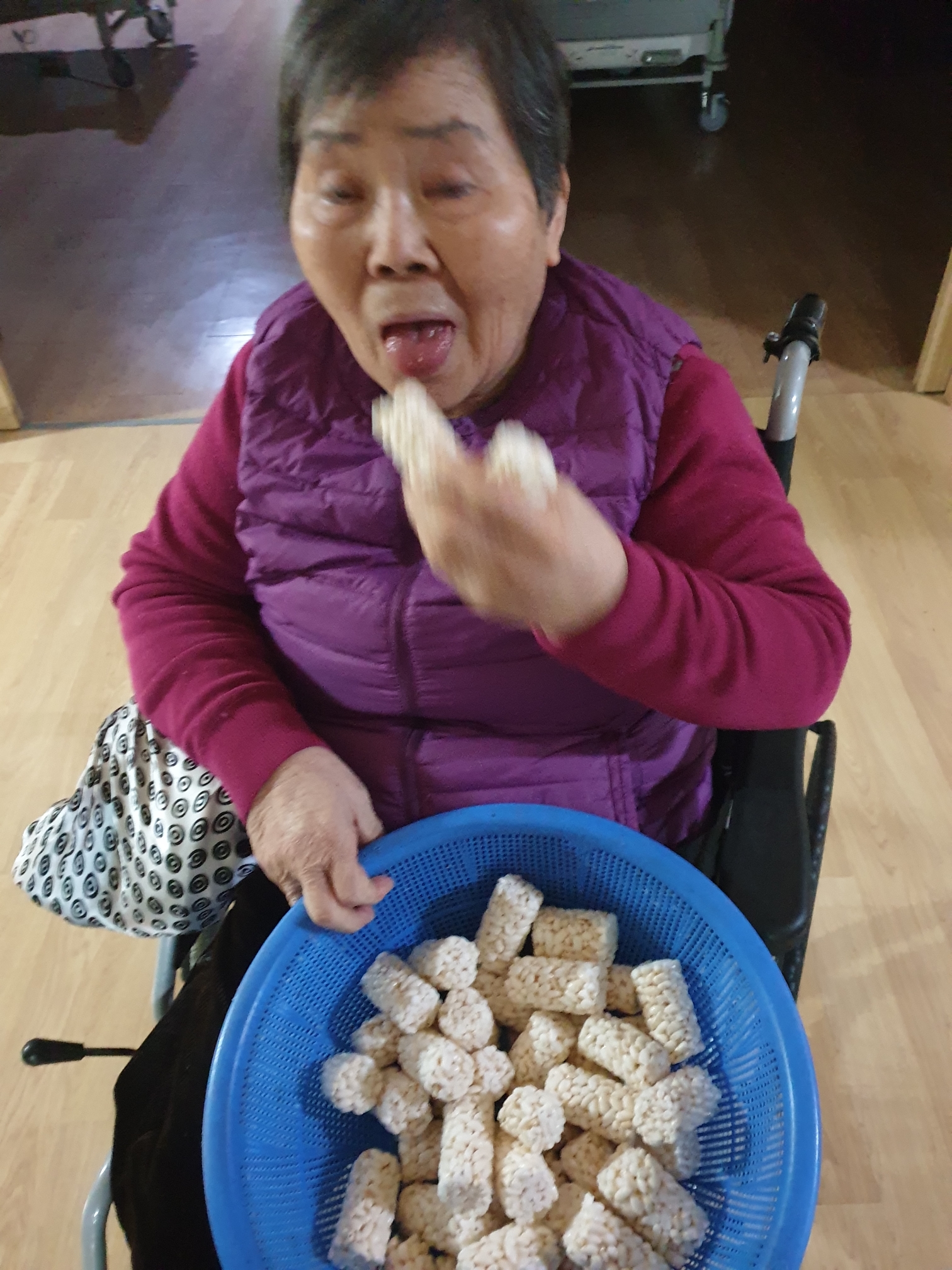 0203(토) 초지어르신들 야간간식 튀밥입니다 부드럽게 녹아서 티비보시며 드시기 좋네요~^^