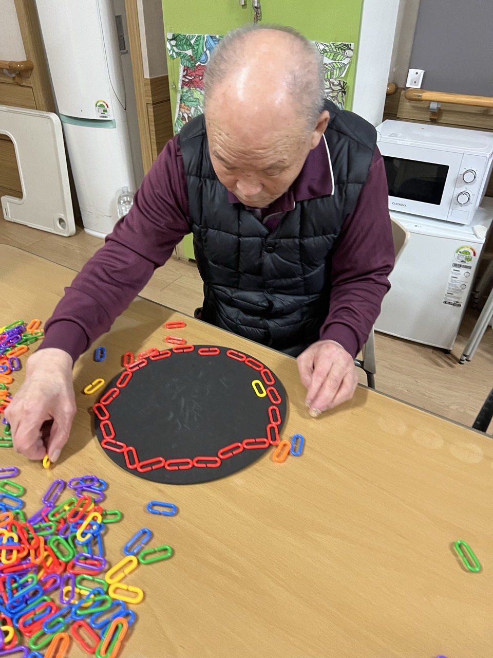 체인 고리를 연결해 목걸이를 만드는 활동을 할 수 있습니다.
