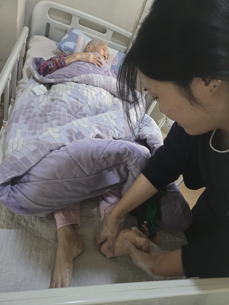 ⑤ 혈액순환을 위해 용천부위를 누르며 마사지한다.