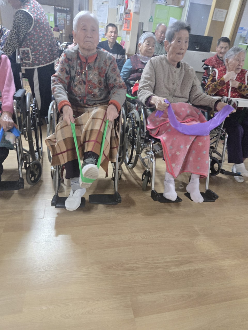 ② 어르신들에게 탄성밴드를 배분해 드린다.