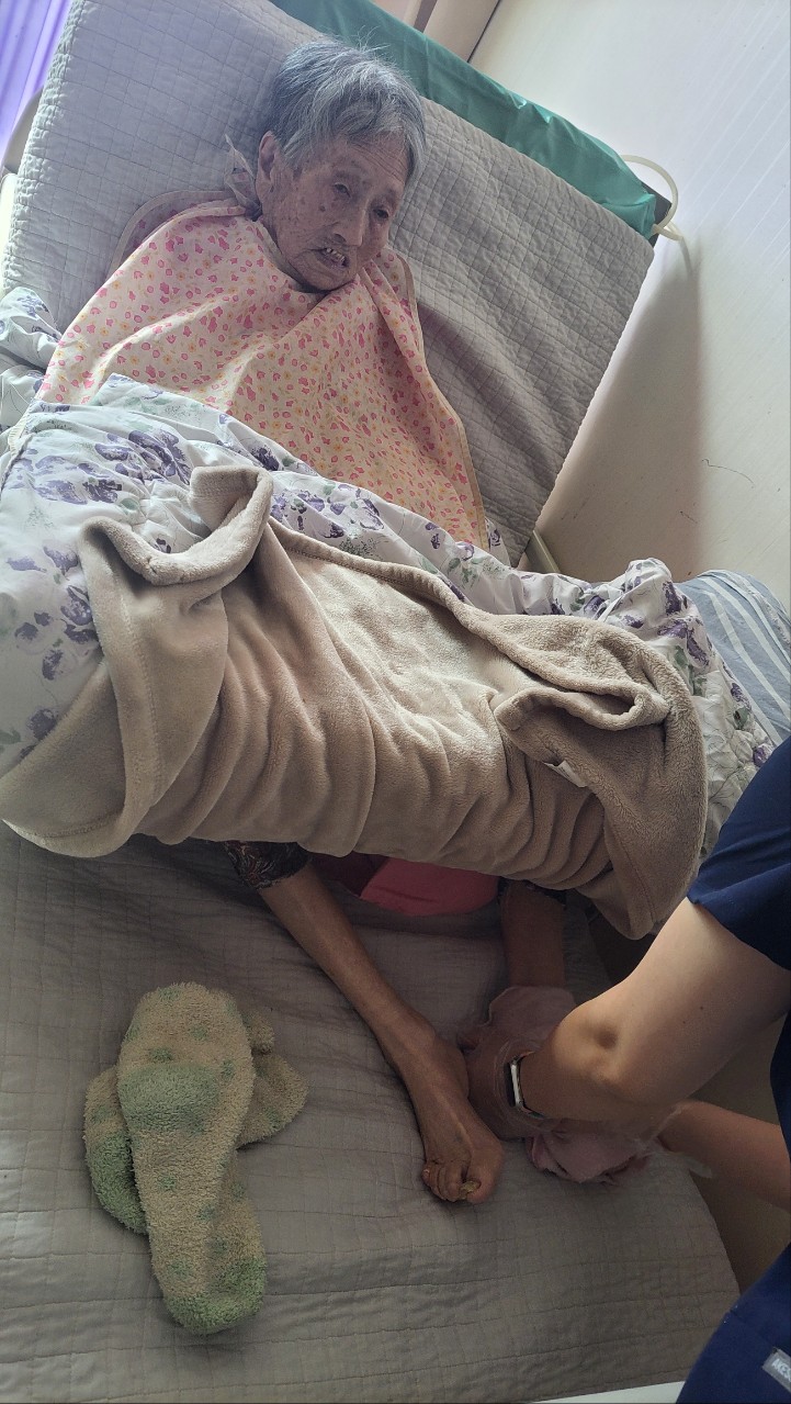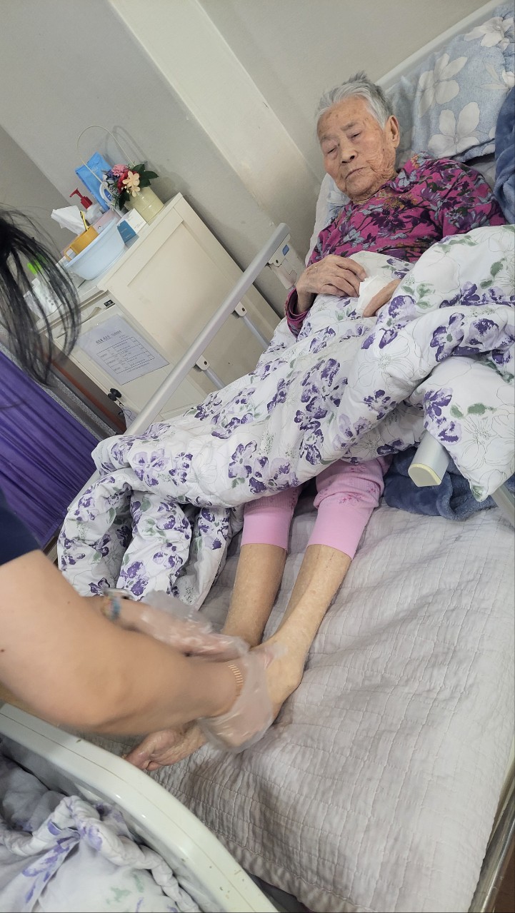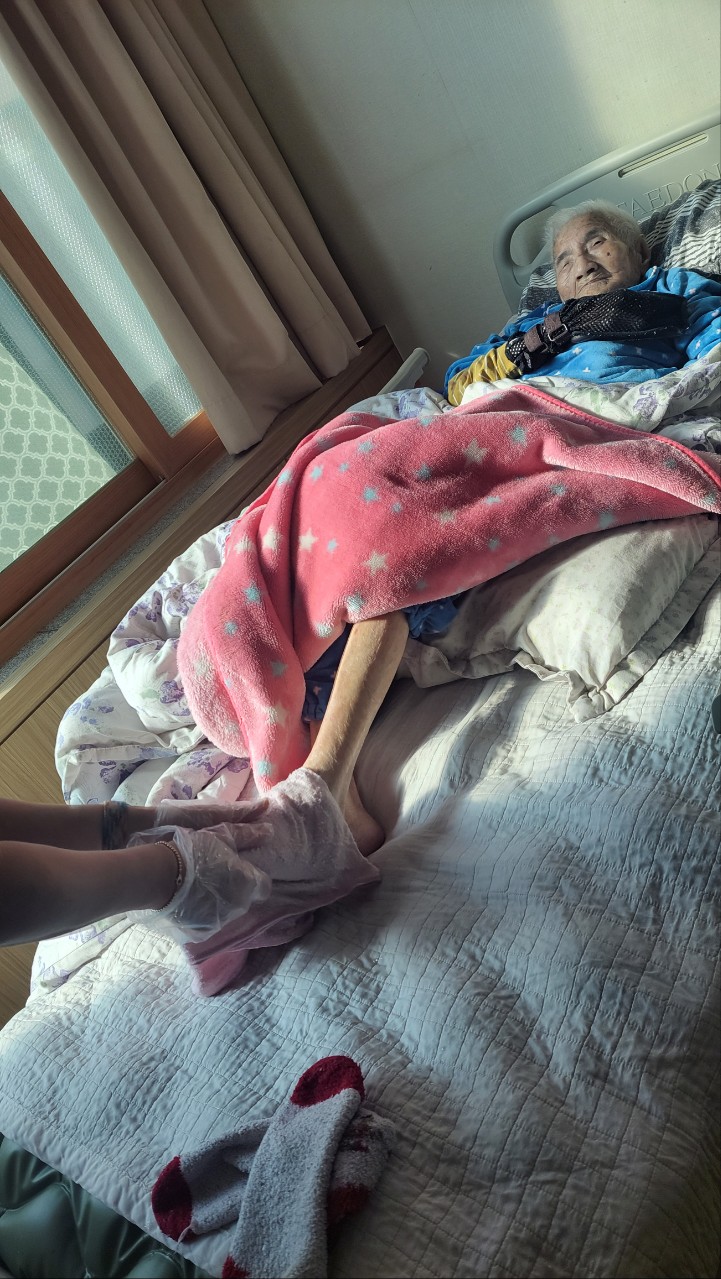 ⑤ 혈액순환을 위해 용천부위를 누르며 마사지한다.