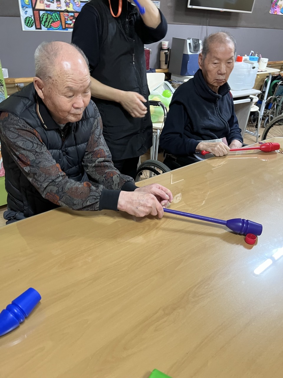 곤봉을 이용한 다양한 놀이 방식으로 움직여 공을 굴려 맞쳐볼수 있습니다.