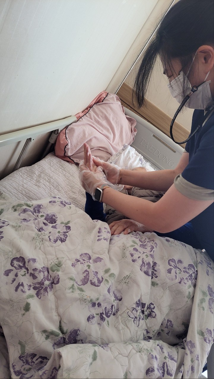 ④ 혈액순환을 위해 손바닥 전체를 누르며 마사지 한다.