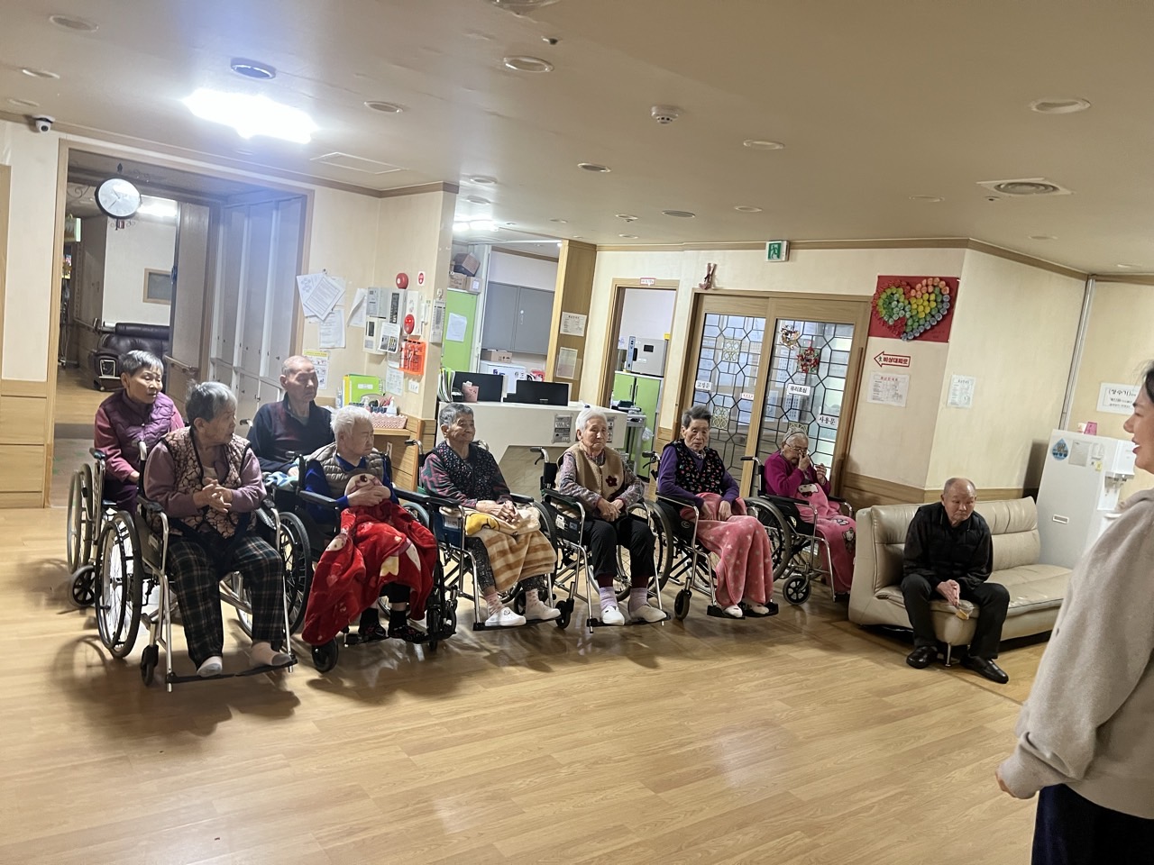 ① 어르신들을 중앙홀로 모신다. (모시기 힘든 어르신은 각방으로 찾아간다.)